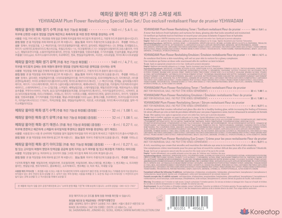 The Face Shop Yehwadam Plum Blossom Vitality, 2 предмета, 1 комплект.