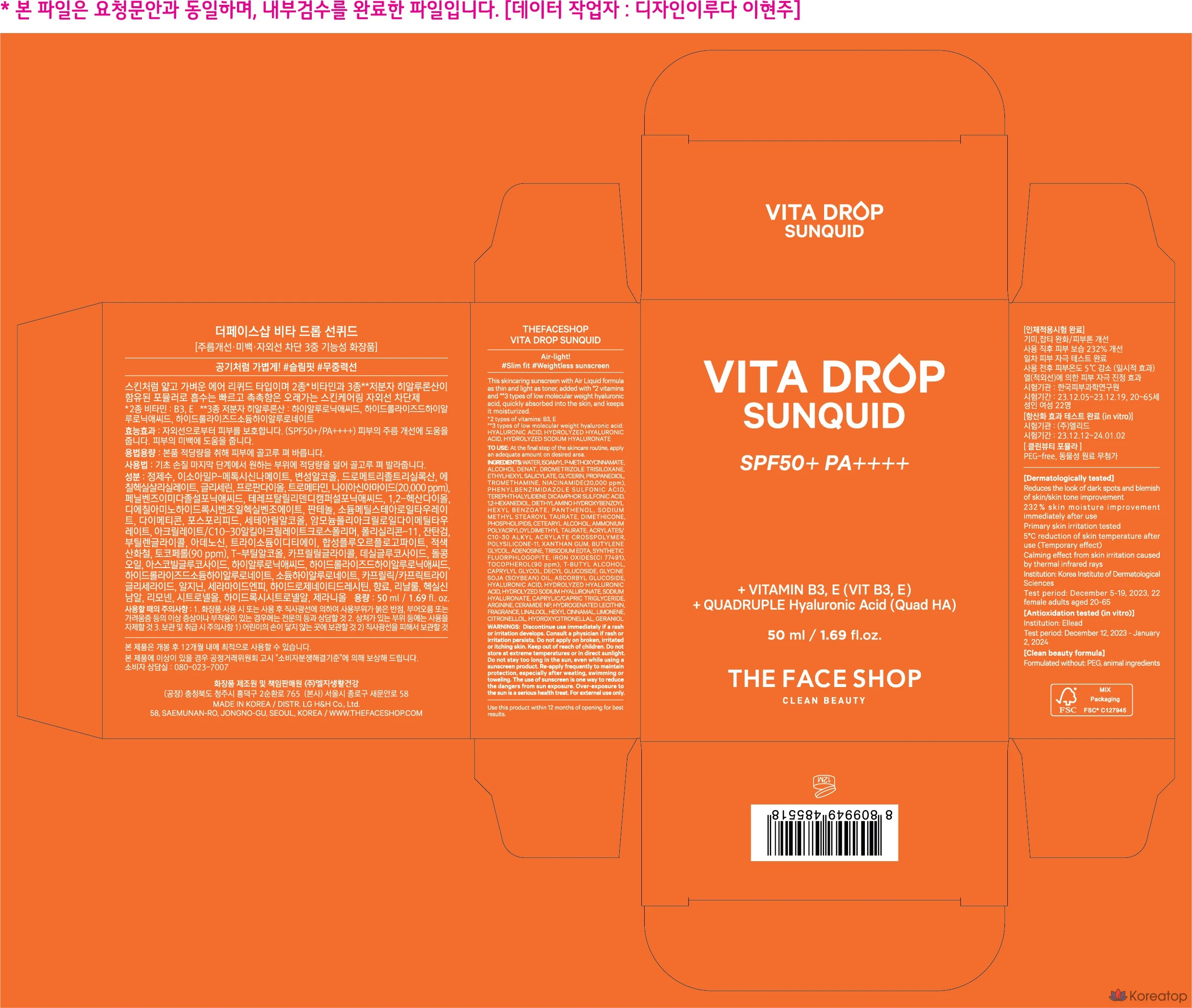 The Face Shop Vita Drop Sunquid SPF50+ PA++++, 50 мл, 1 шт.