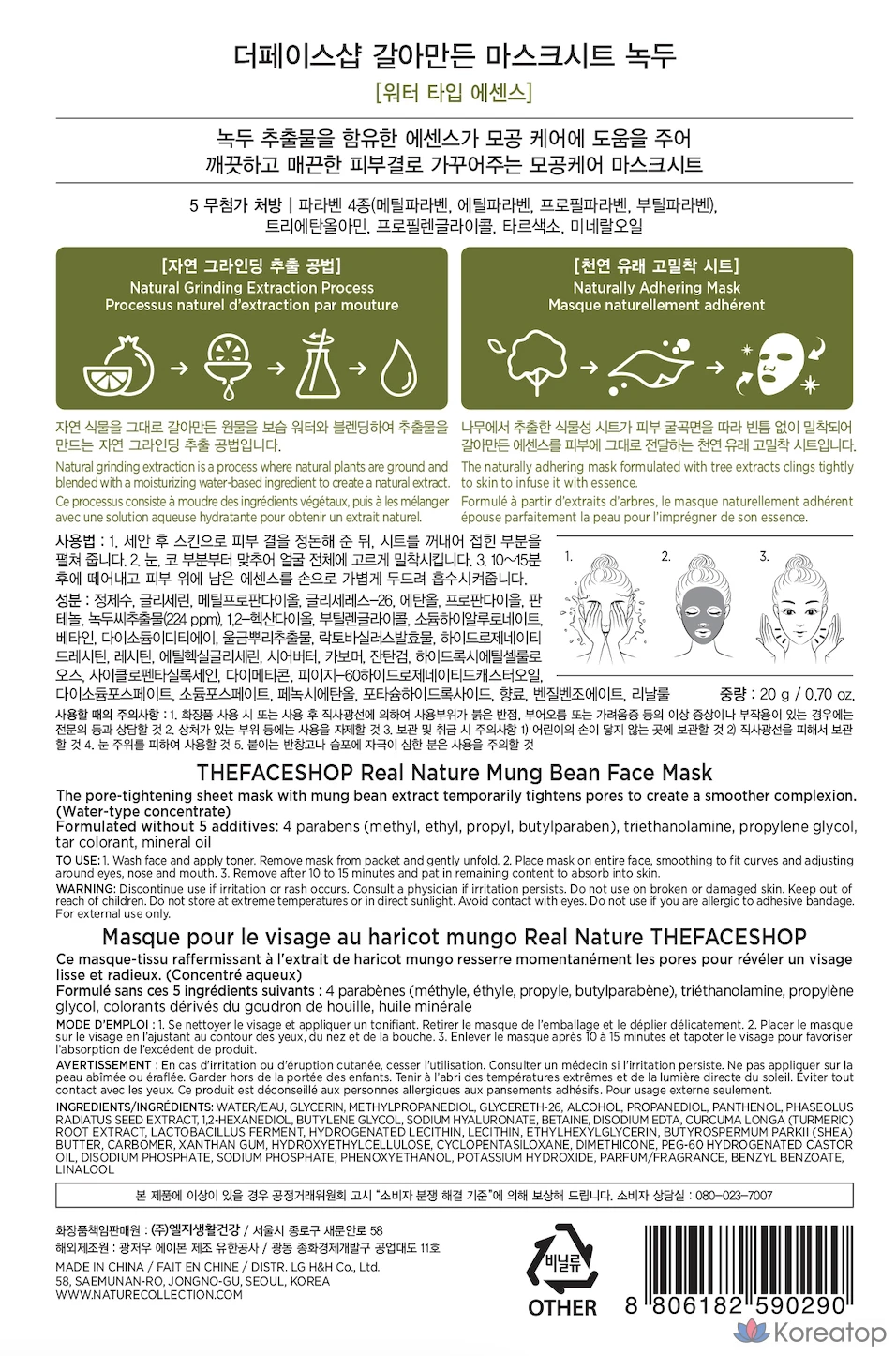 Тканевая маска для лица The Face Shop с экстрактом зеленой фасоли, 20 г, 1 упаковка, 1 штука