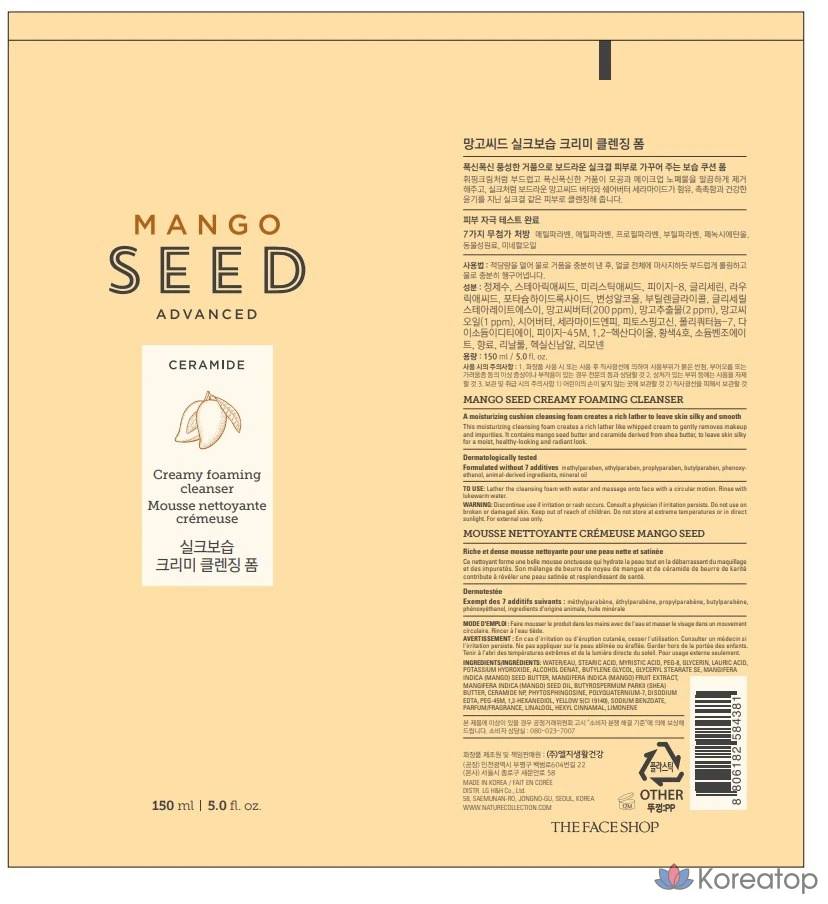 Увлажняющая очищающая пенка с экстрактом косточек манго The Face Shop