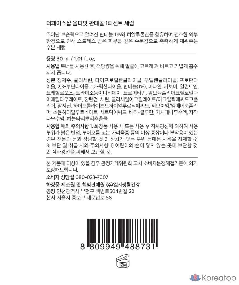 Увлажняющая и успокаивающая сыворотка The Face Shop Ultimate с пантенолом 1%, 1 шт., 30 мл
