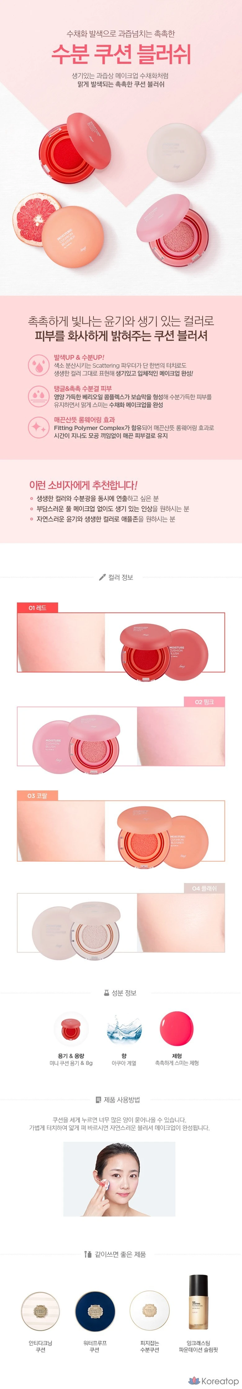 Воздушная кушон-текстура создает естественный румянец с эффектом здорового сияния. Формула с увлажняющими компонентами комфортно ложится на кожу. Легко растушевывается для мягкого градиентного перехода. Идеально подходит для создания свежего дневного образа. 🌸