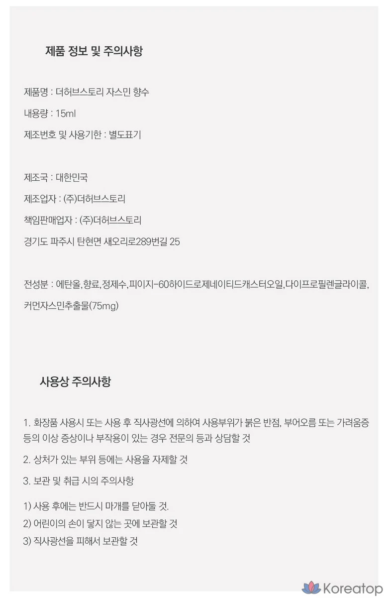 Парфюмированная вода с ароматом жасмина The Herb Story, 15 мл