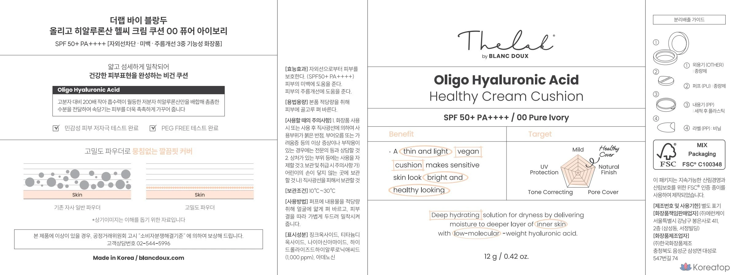 Крем-кушон с гиалуроновой кислотой THE LAB by blanc doux Oligo, сменный блок, № 0, цвет «чистая слоновая кость», 1 шт.