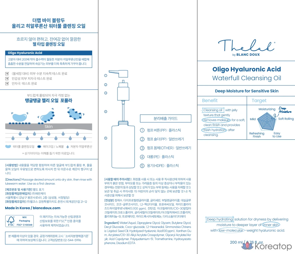 Очищающее масло с гиалуроновой кислотой THE LAB by blanc doux Oligo Waterful, 1 шт., 200 мл