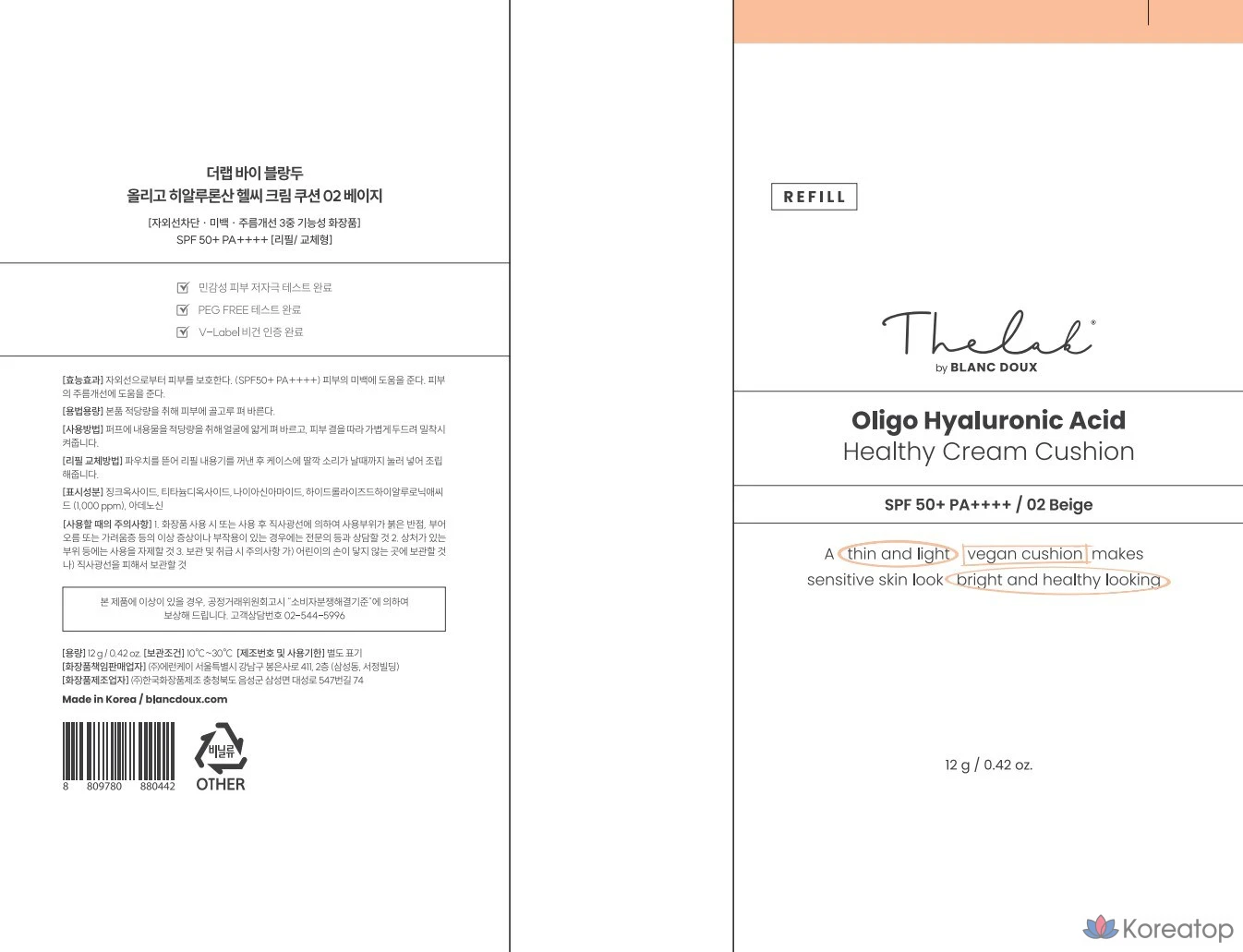 Сменный блок крема-кушона THE LAB by blanc doux Oligo с гиалуроновой кислотой, 12 г, оттенок 02 бежевый, 1 шт.