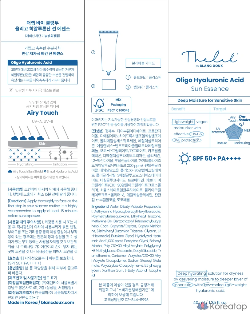Солнцезащитная эссенция с гиалуроновой кислотой THE LAB by blanc doux Oligo SPF50+ PA++++, 40 мл, 1 шт.