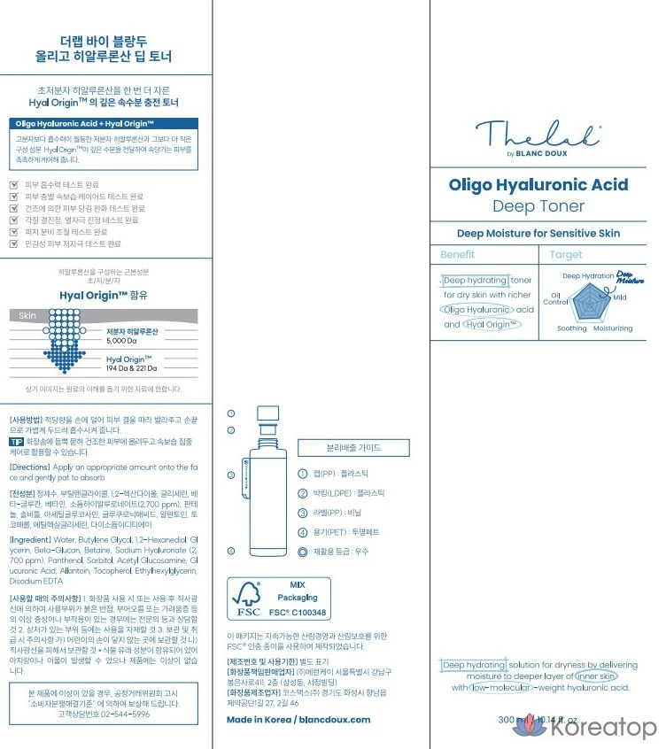 Тоник для глубокого увлажнения кожи с гиалуроновой кислотой The Lab by Blanc Doux Oligo, 300 мл, 1 шт.