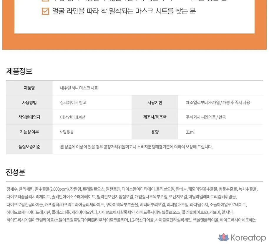 Маска-салфетка The Saem Natural Honey Mask Sheet, 21 мл, 1 упаковка, 6 штук.