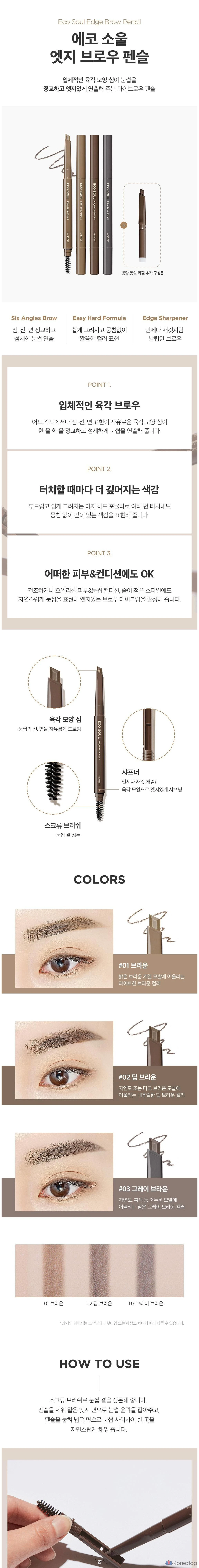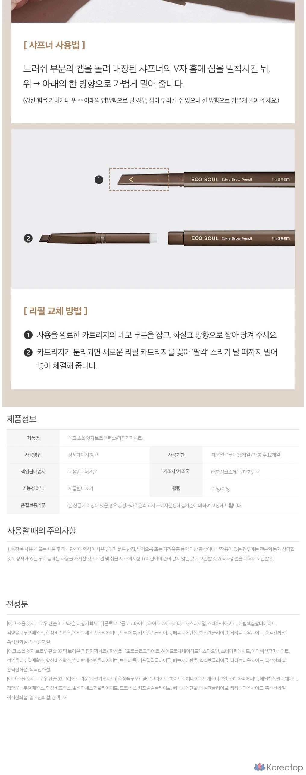 Набор карандашей для бровей The Saem Eco Soul Edge Brow Pencil + сменный блок, оттенок 03 (серо-коричневый), 1 шт.