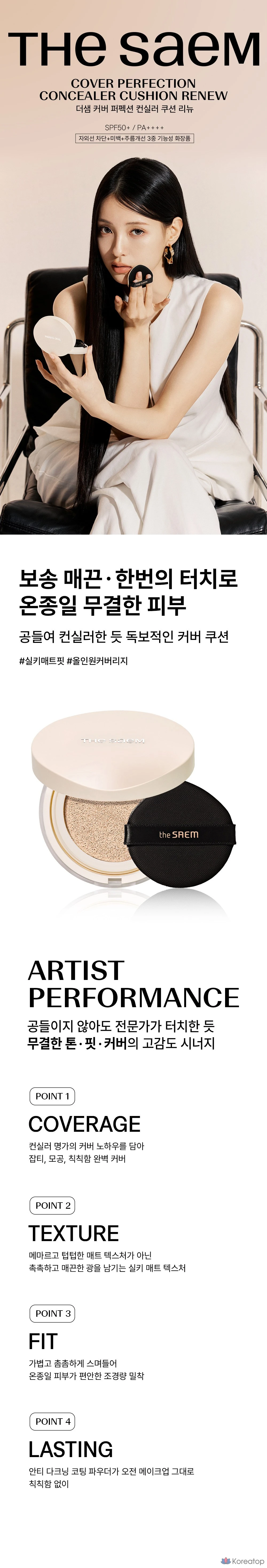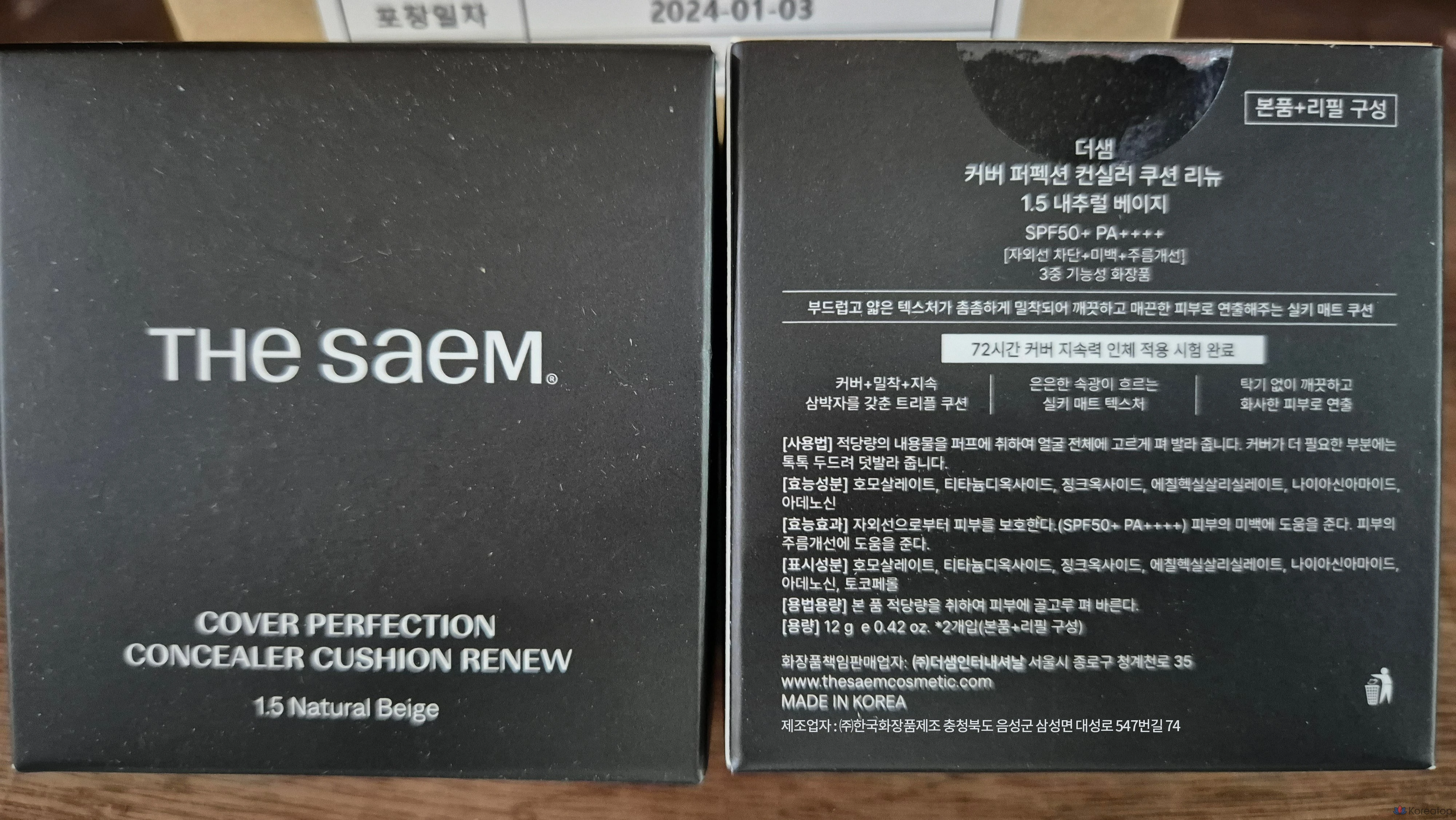 Набор консилера The Saem Cover Perfection Concealer Cushion Renew 12 г + сменный блок 12 г, оттенок 1.5 Natural Beige, 1 шт.