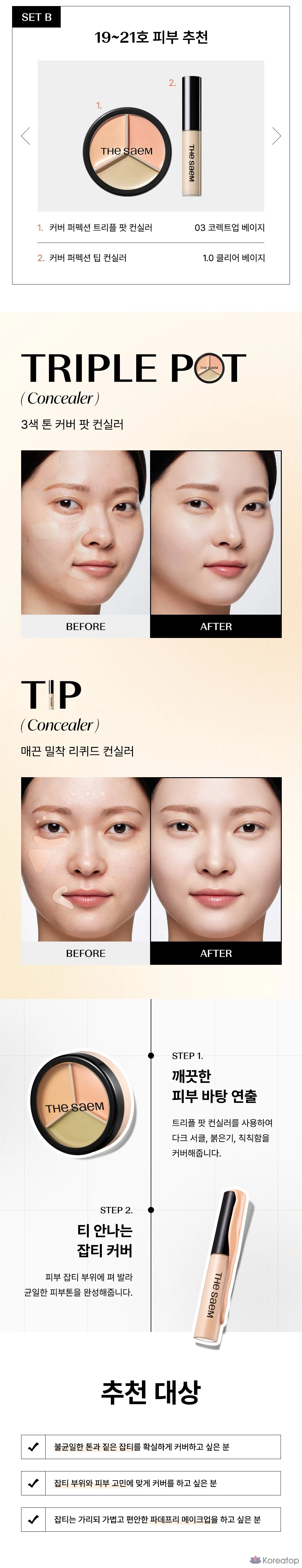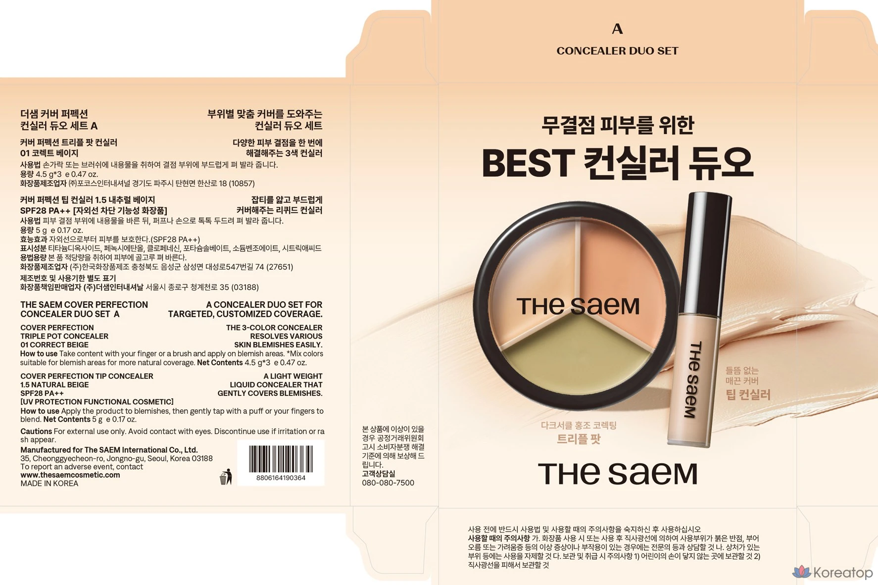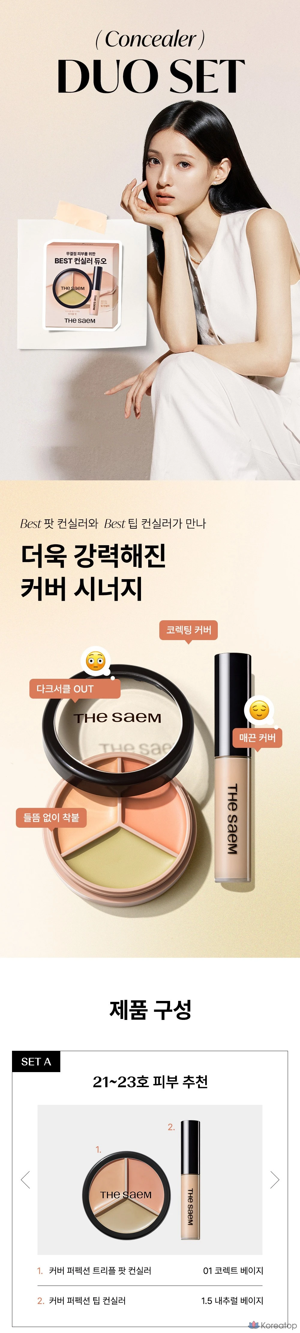 Набор консилеров The Saem Cover Perfection Concealer Duo Set B, 1 шт., 03 Correct Up Beige + 1.0 Clear Beige