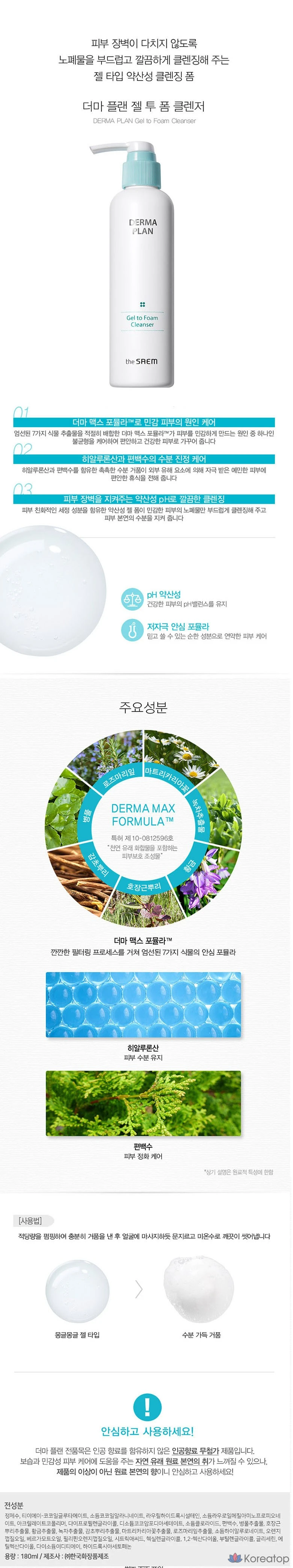Очищающий гель-пенка The Saem Derma Plan, 180 мл, 1 шт.