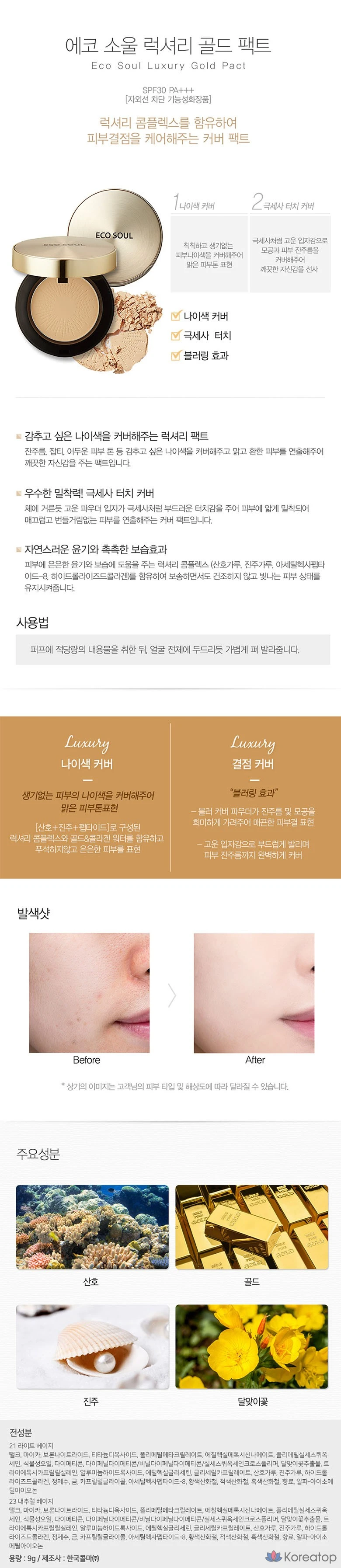 [The Saem] Flaw Cover Pact Eco Soul Luxury Gold Pact, № 2.23 (натуральный бежевый), 1 шт.