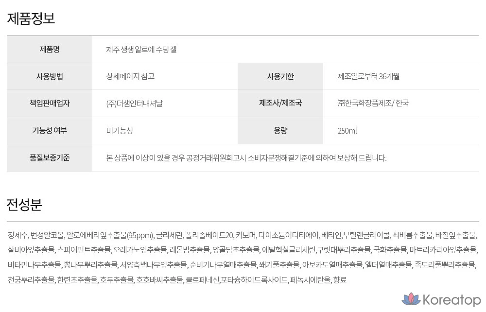 На основе натурального алоэ с острова Чеджу
