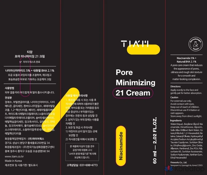 Крем для сужения пор TIAM 21, 1 шт., 60 мл