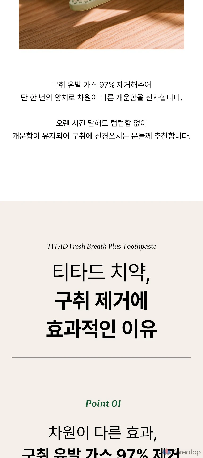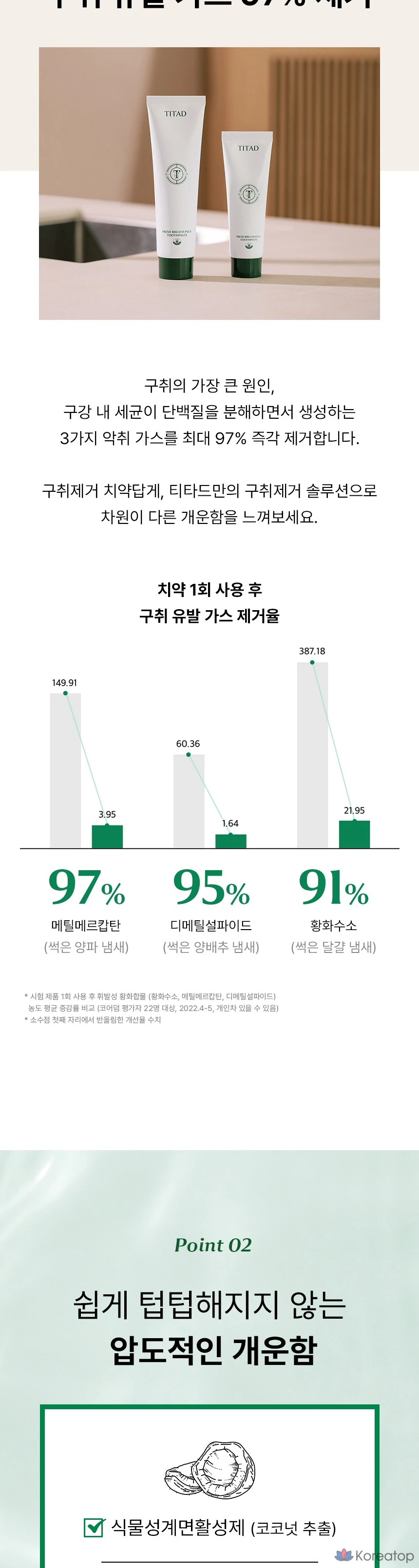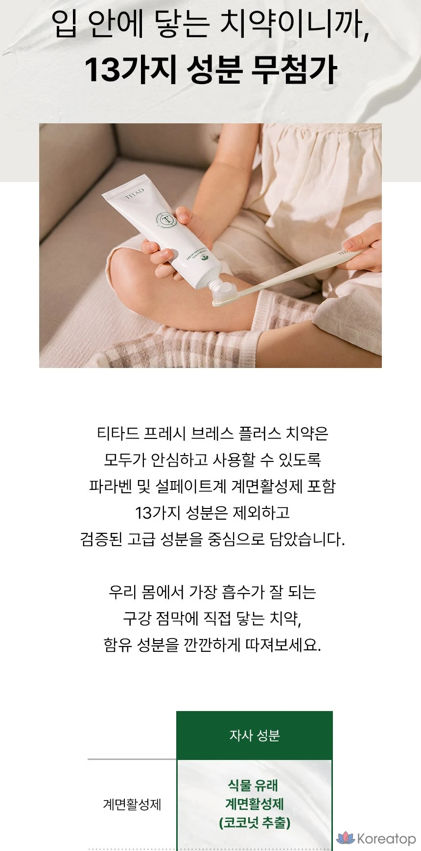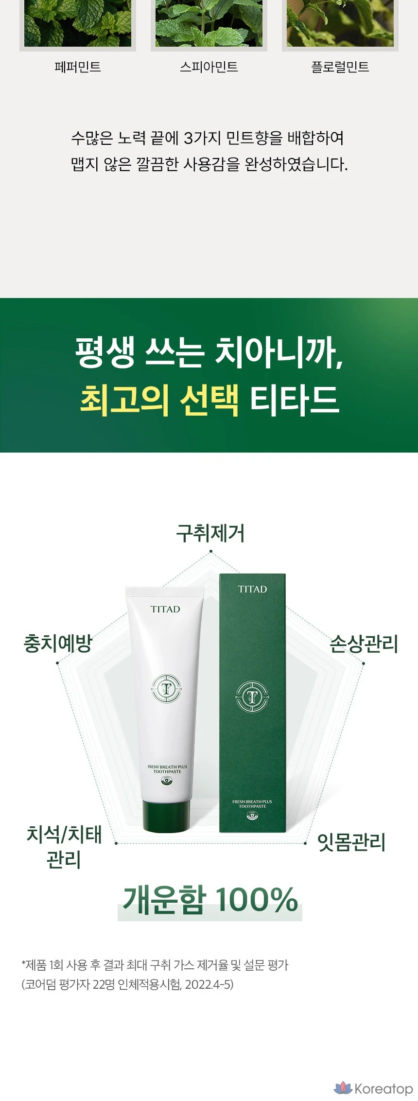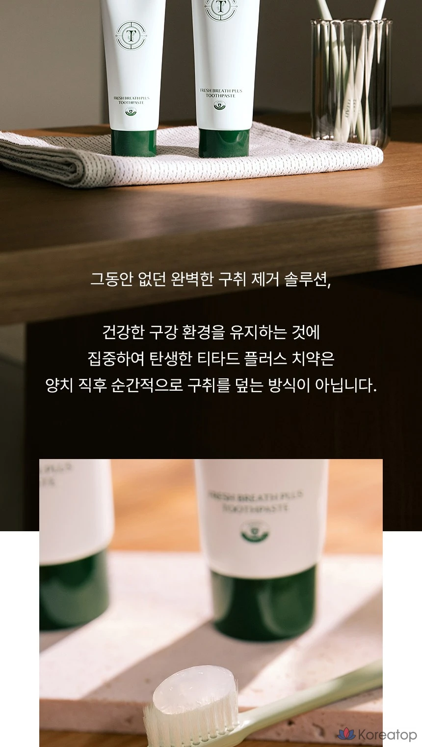 Зубная паста TITAD 'Свежее дыхание плюс' обеспечивает длительную свежесть дыхания благодаря тройному мятному вкусу. Формула с фторидом помогает предотвратить кариес, а растительные поверхностно-активные вещества из кокоса мягко очищают зубы и десны. Паста эффективно устраняет неприятный запах изо рта, обеспечивая комфортное ощущение на протяжении дня.
