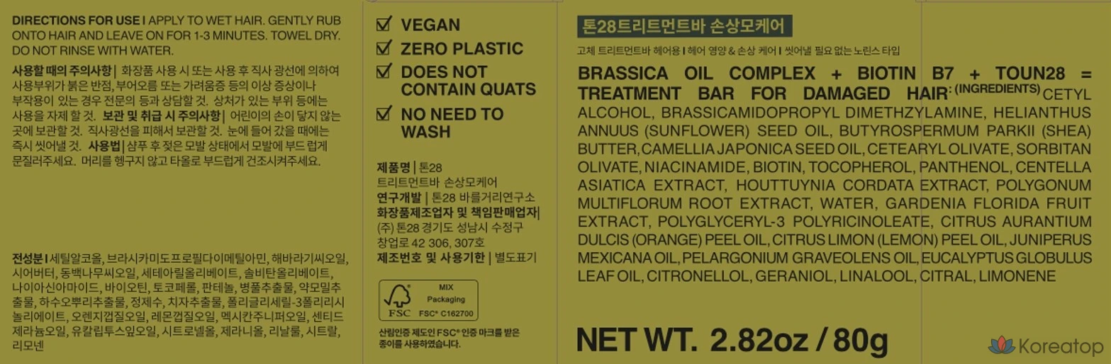 Средство для ухода за поврежденными волосами TOUN28, 80 г, 1 шт.