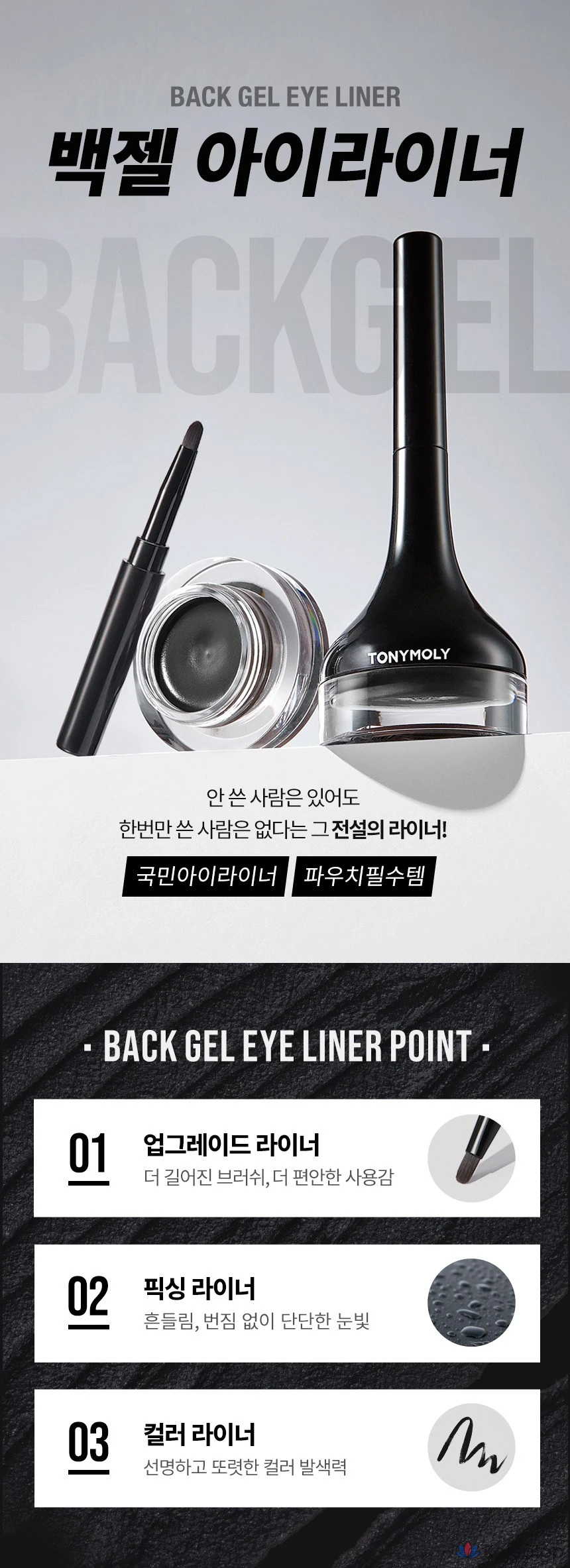 Гелевая подводка для глаз Tony Moly Back с длинной кистью, 3,5 г, № 1, черная, 1 шт.