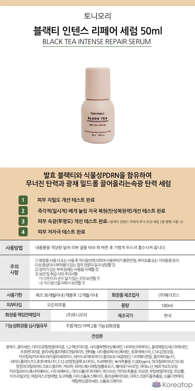 Интенсивная восстанавливающая сыворотка с черным чаем Tony Moly, 1 шт., 50 мл
