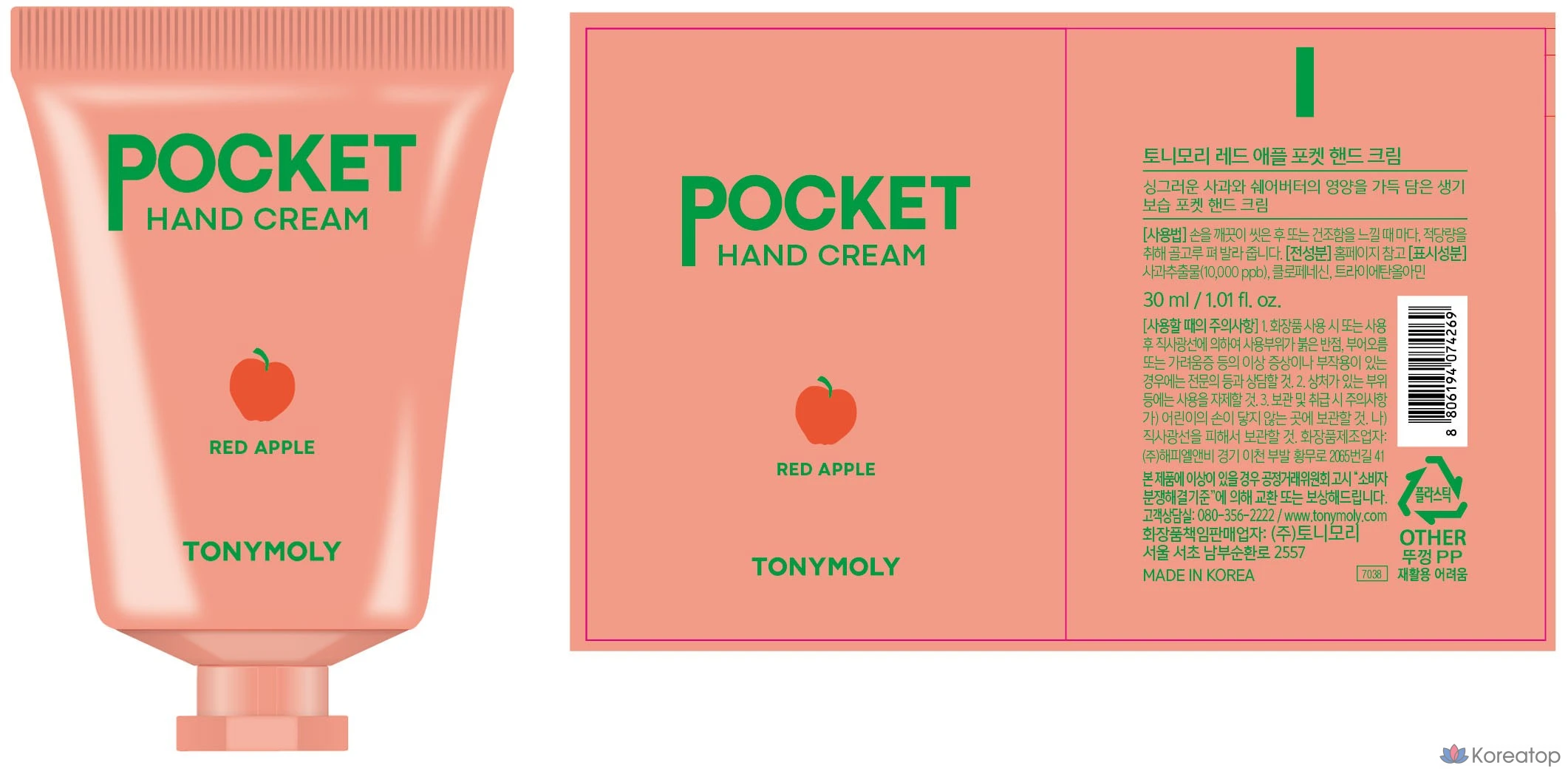 Карманный крем для рук Tony Moly «Красное яблоко», 30 мл, 1 шт.