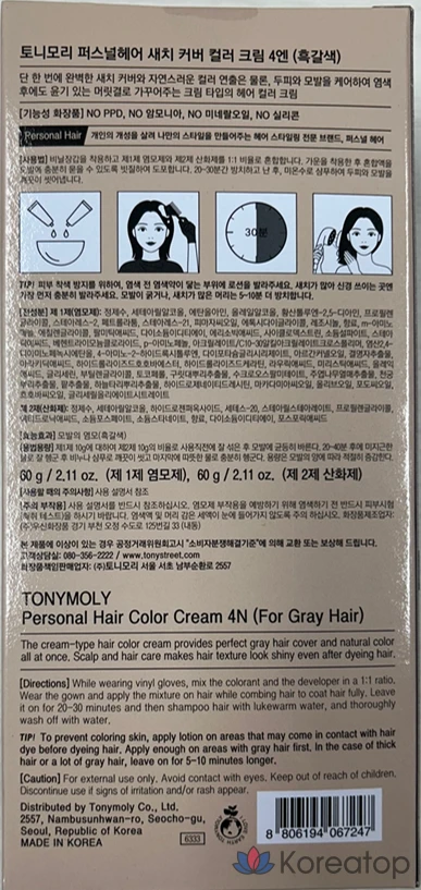 Крем-краска для волос Tony Moly Personal Shade Cover, 4N (черно-коричневый), 1 шт.