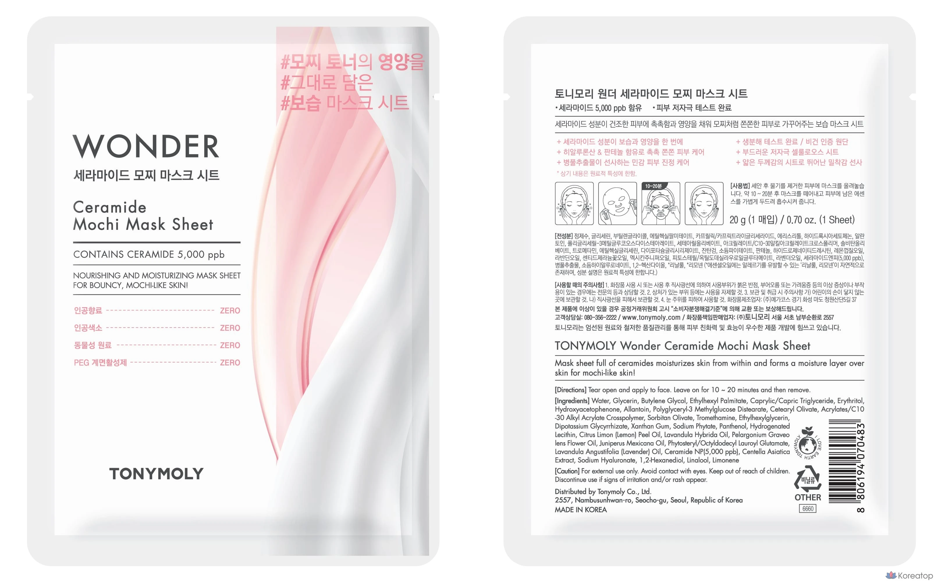 Маска-салфетка Tony Moly Wonder Ceramide Mochi, 1 лист, 1 упаковка, 1 шт.