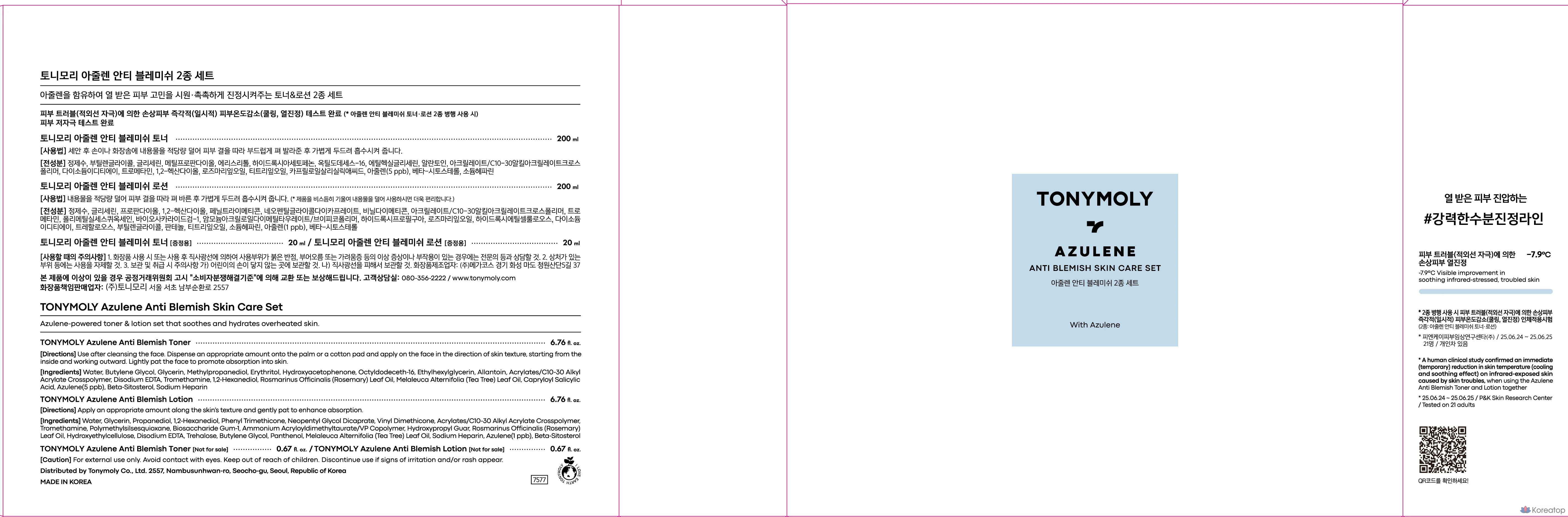 Набор Tony Moly Azulene Anti-Blemish из 2 предметов: тоник 20 мл + лосьон 20 мл, 1 набор.