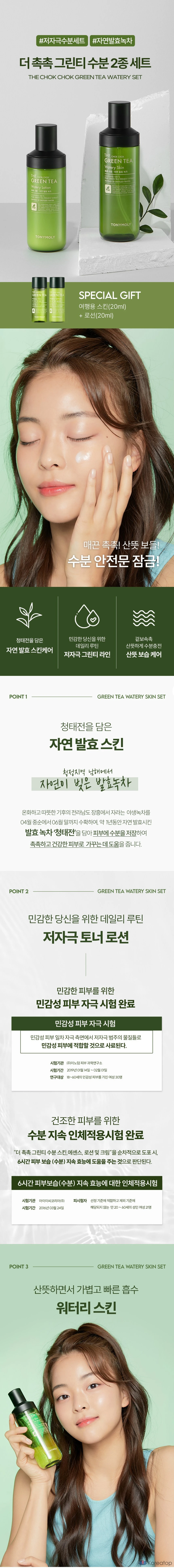 Набор увлажняющих средств для тела Tony Moly The Chok Chok Green Tea Moisture, 2 предмета, 1 комплект