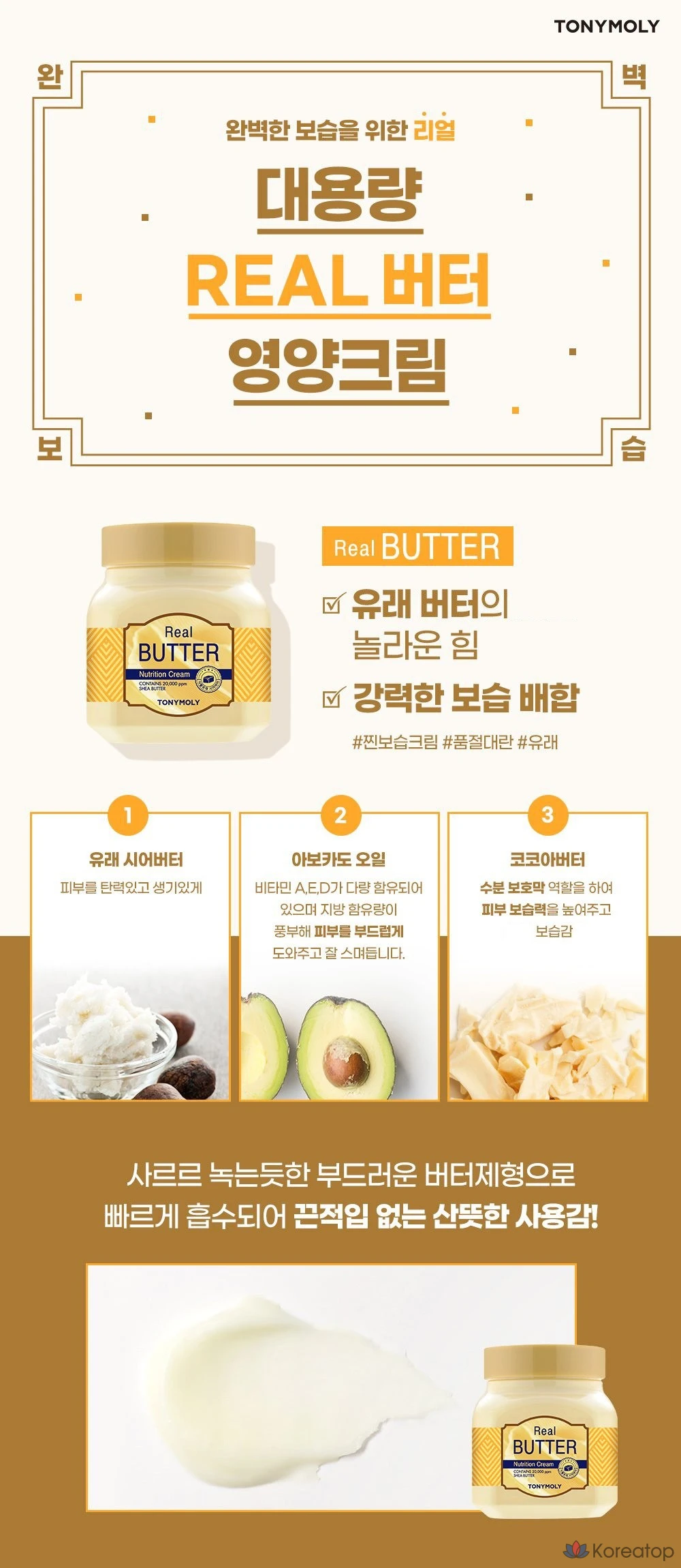 Питательный крем Tony Moly Real Butter создан для интенсивного ухода за кожей, обеспечивая ей глубокое увлажнение и питание. Благодаря натуральным ингредиентам и масляной текстуре, крем легко впитывается, оставляя кожу мягкой и гладкой. Идеально подходит для использования в любое время года, особенно в холодные месяцы, когда кожа нуждается в дополнительной защите. Удобная упаковка позволяет брать крем с собой в дорогу, чтобы ваша кожа всегда оставалась в отличном состоянии. 🧴