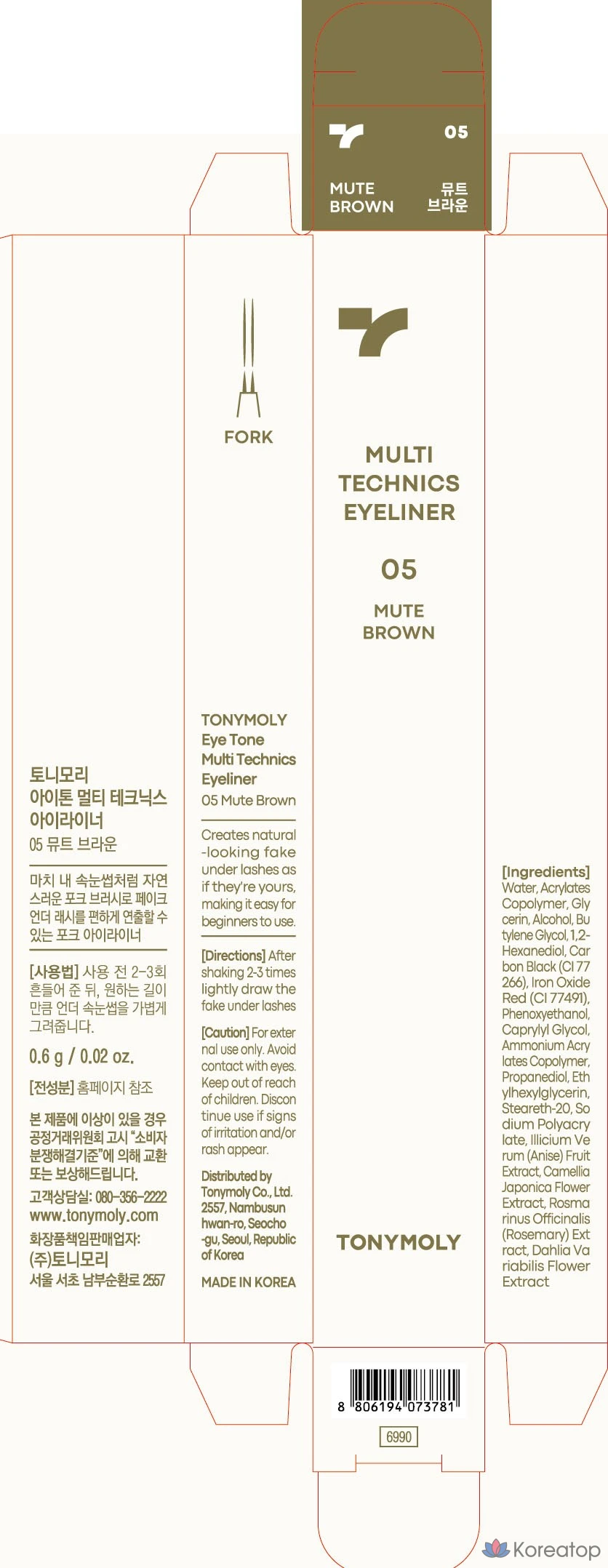 Подводка для глаз Tony Moly Eyetone Multi-Techniques 0,6 г (№ 01-05), 1 шт., цвет 00 фарфор.