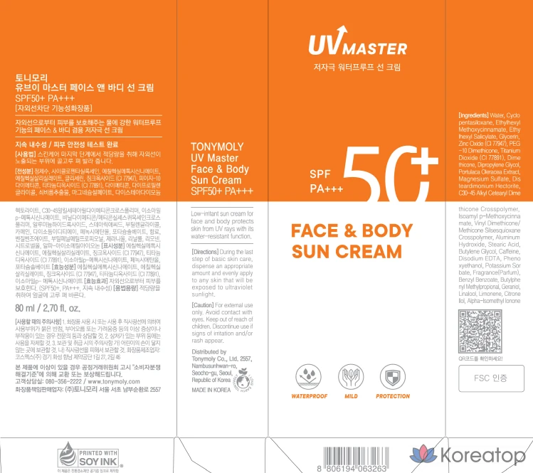 Солнцезащитный крем для лица и тела Tony Moly UV Master SPF50+ PA+++, 80 мл, 1 шт.