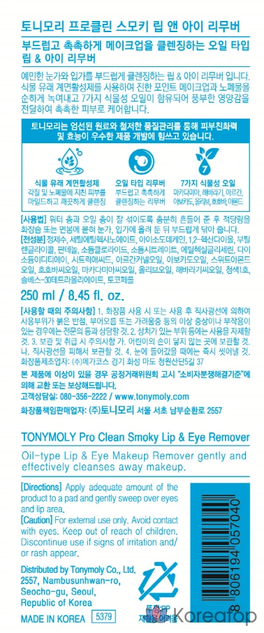 Средство для снятия макияжа с губ и глаз Tony Moly Pro Clean Smoky Lip & Eye Remover, 100 мл, 1 шт.