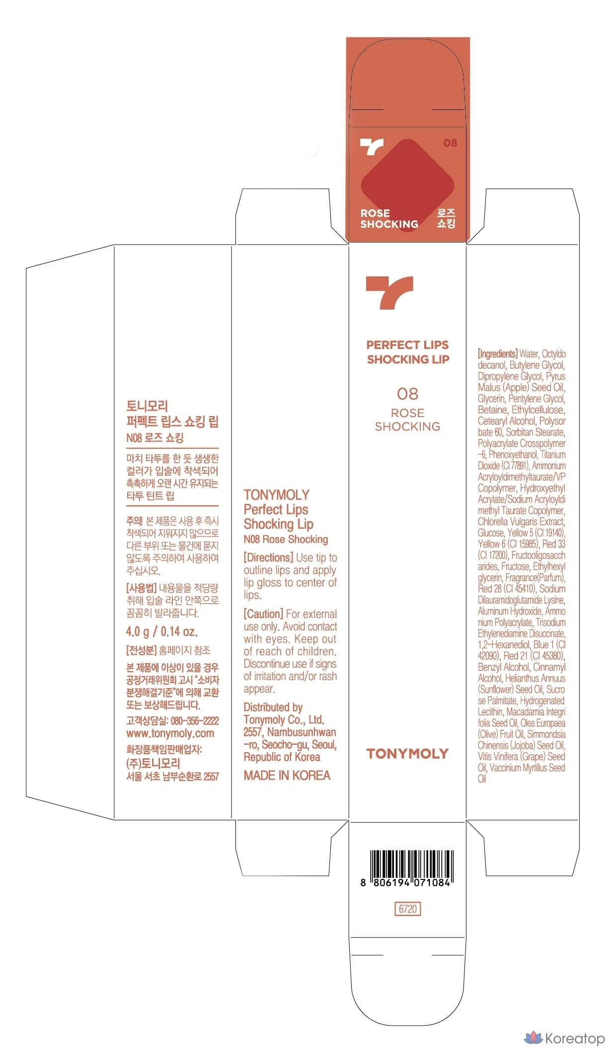 Тинт для губ Tony Moly Perfect Lips Shocking, N08 Rose Shocking, 4 г, 1 шт.