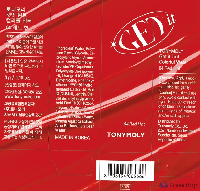 Тинт для губ Tony Moly Lip Tone Get It Tint 04 Red Hot, 9,5 мл