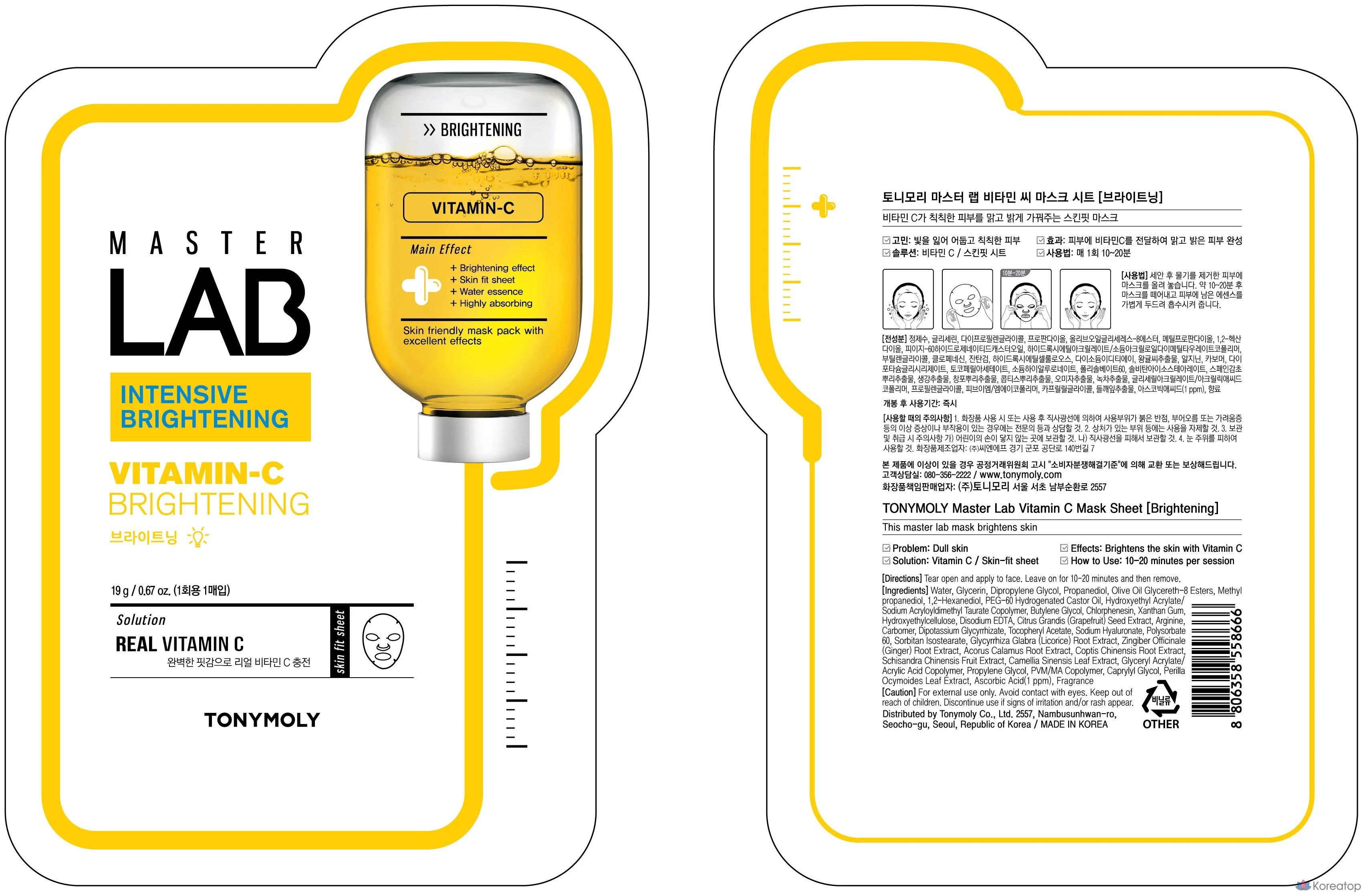 Тканевая маска для лица Tony Moly Master Lab с витамином С, 1 шт., 1 упаковка