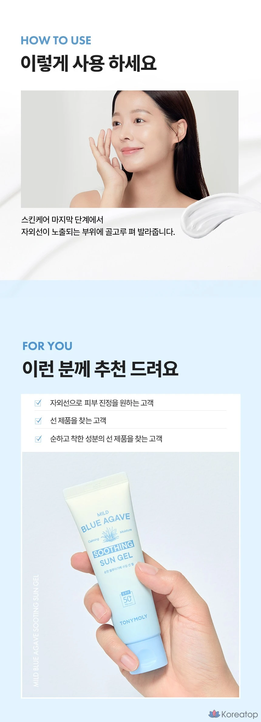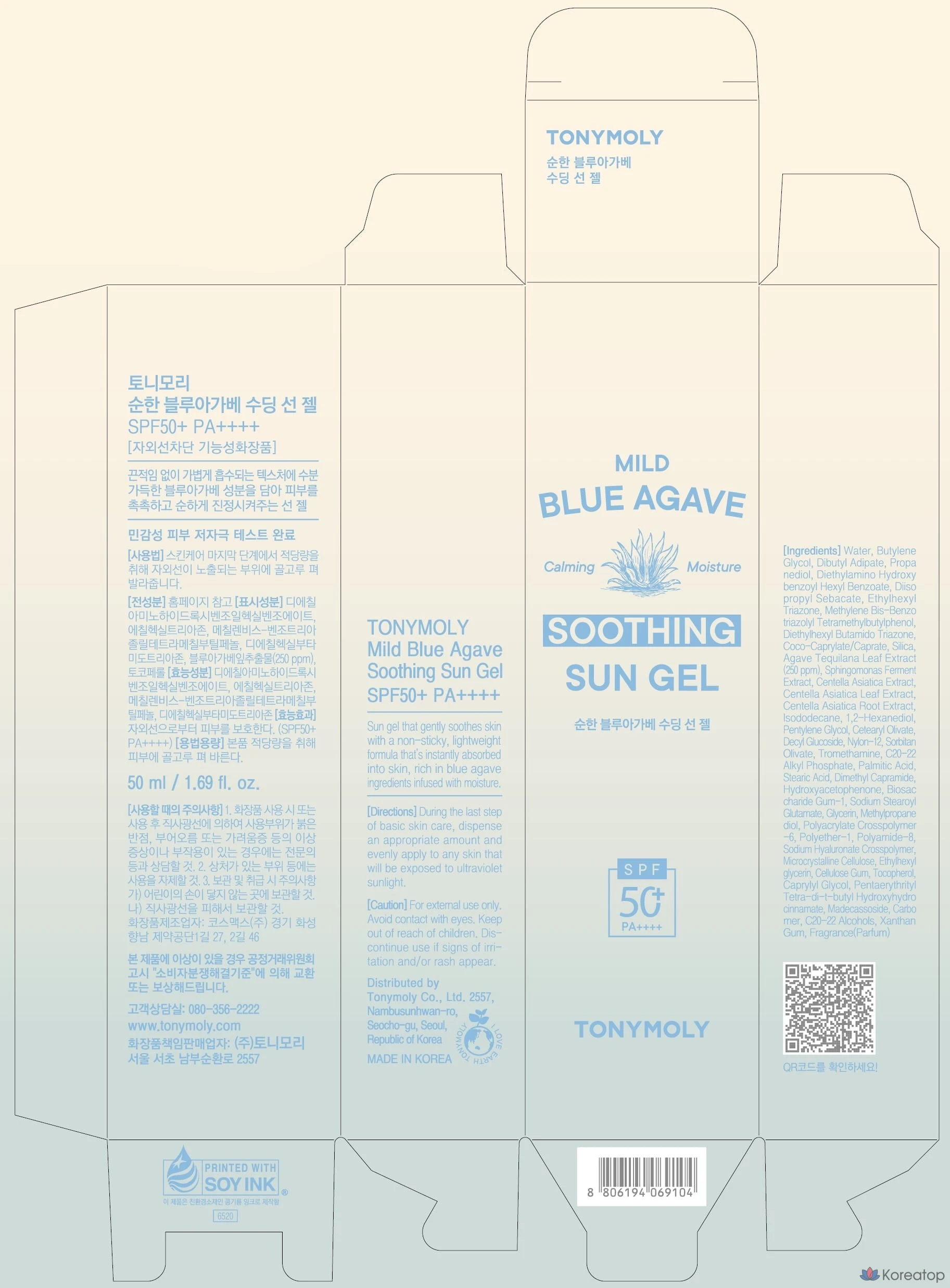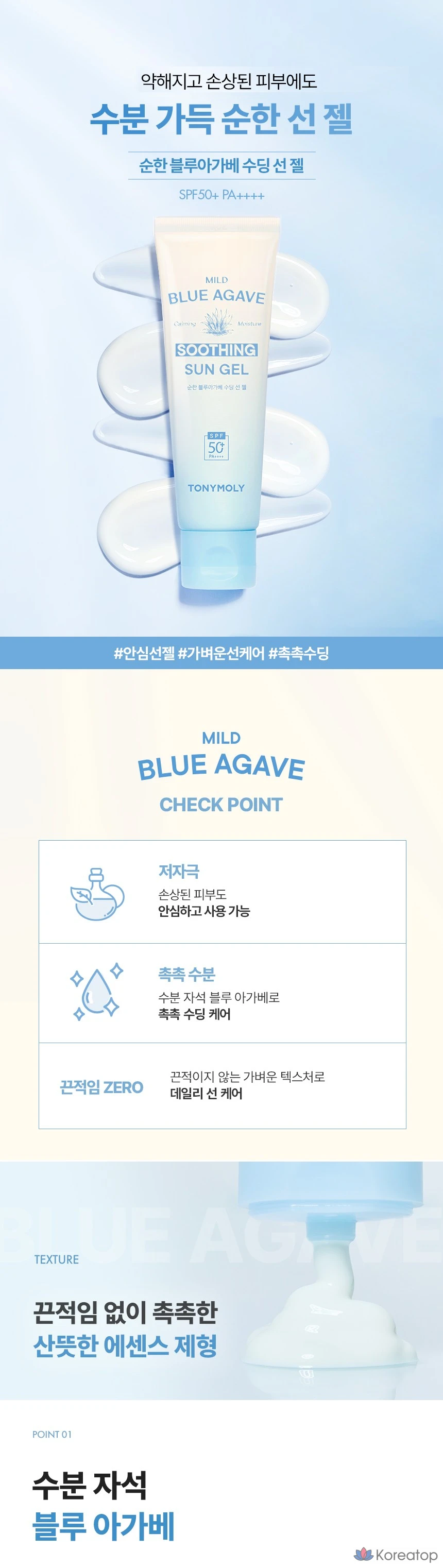 Успокаивающий солнцезащитный гель Tony Moly Mild Blue Agave SPF50+ PA++++, 50 мл, 1 шт.
