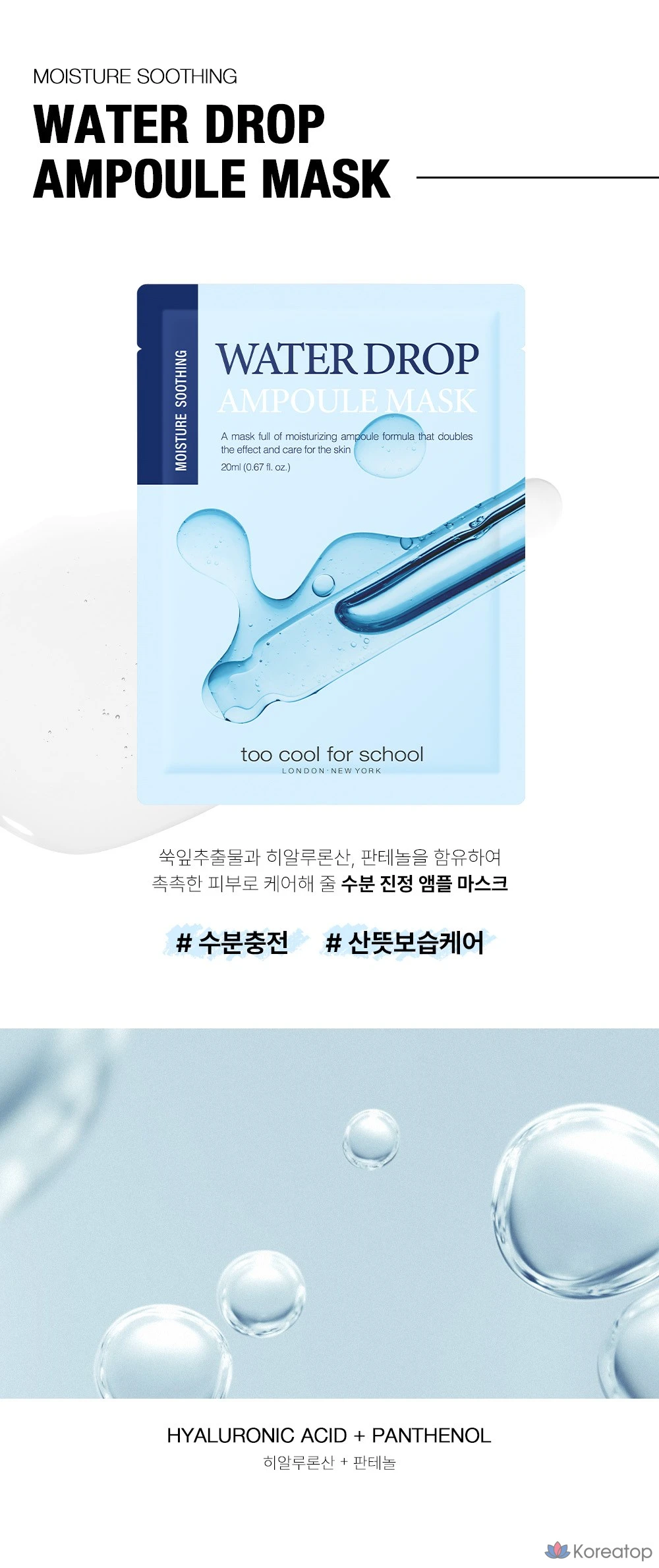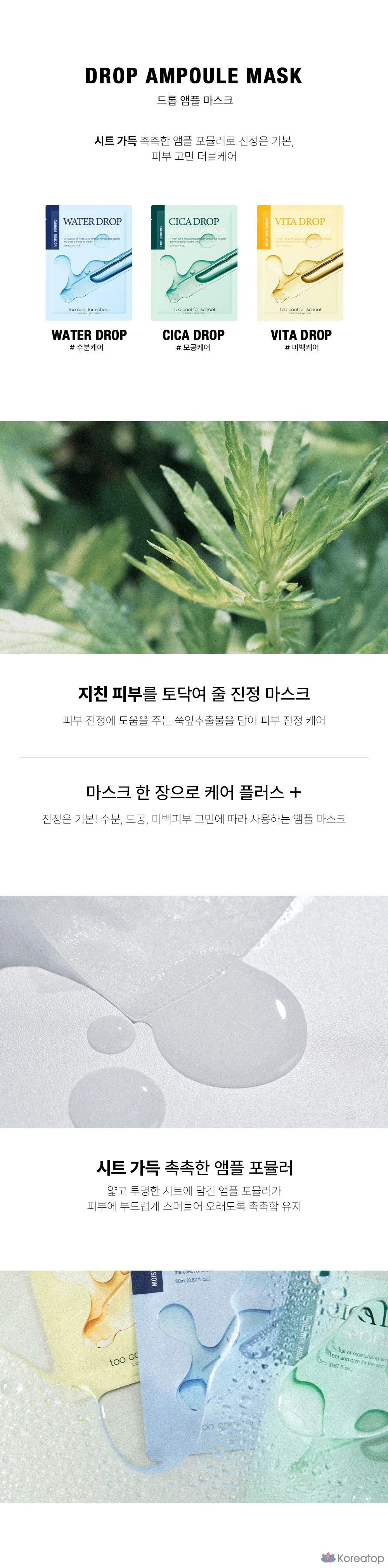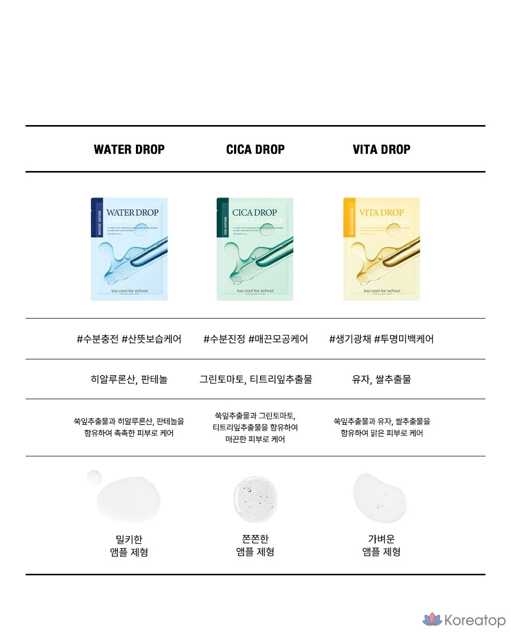 Маска-ампулы Too Cool For School Water Drop, 4 штуки, 1 упаковка
