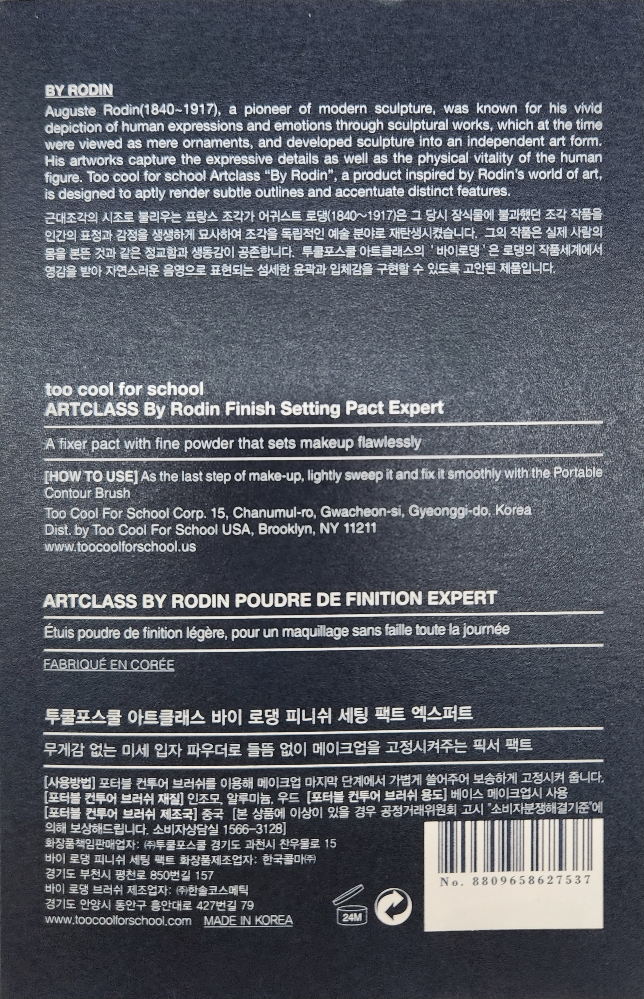 Набор для фиксации макияжа Too cool for school от Rodin Finish Setting Pact 4 г + портативная кисть для контурирования, 1 шт.