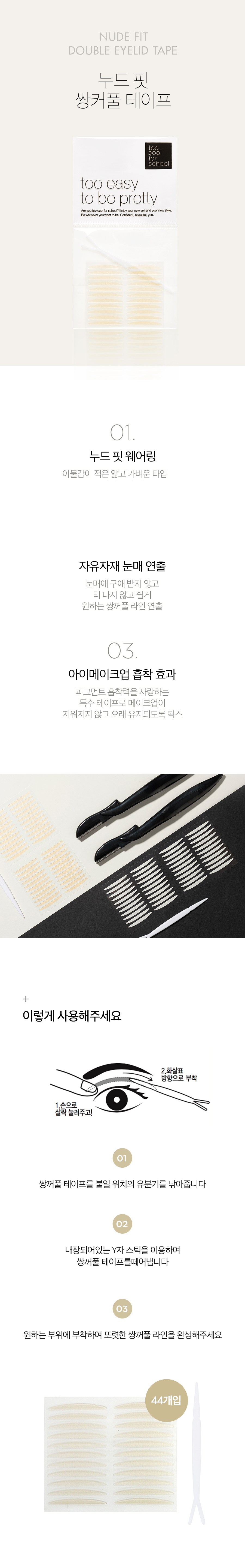 Набор клейких лент для создания эффекта двойного века Too Cool For School Nude Fit, 44 шт., телесный цвет, 2 комплекта.