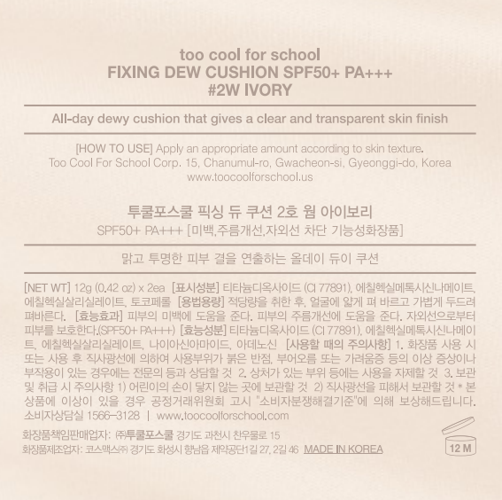 Набор тональных кремов Too cool for school Fixing Dew Cushion Foundation 12 г + сменный блок 12 г, № 2C Cool Petal, 1 шт.