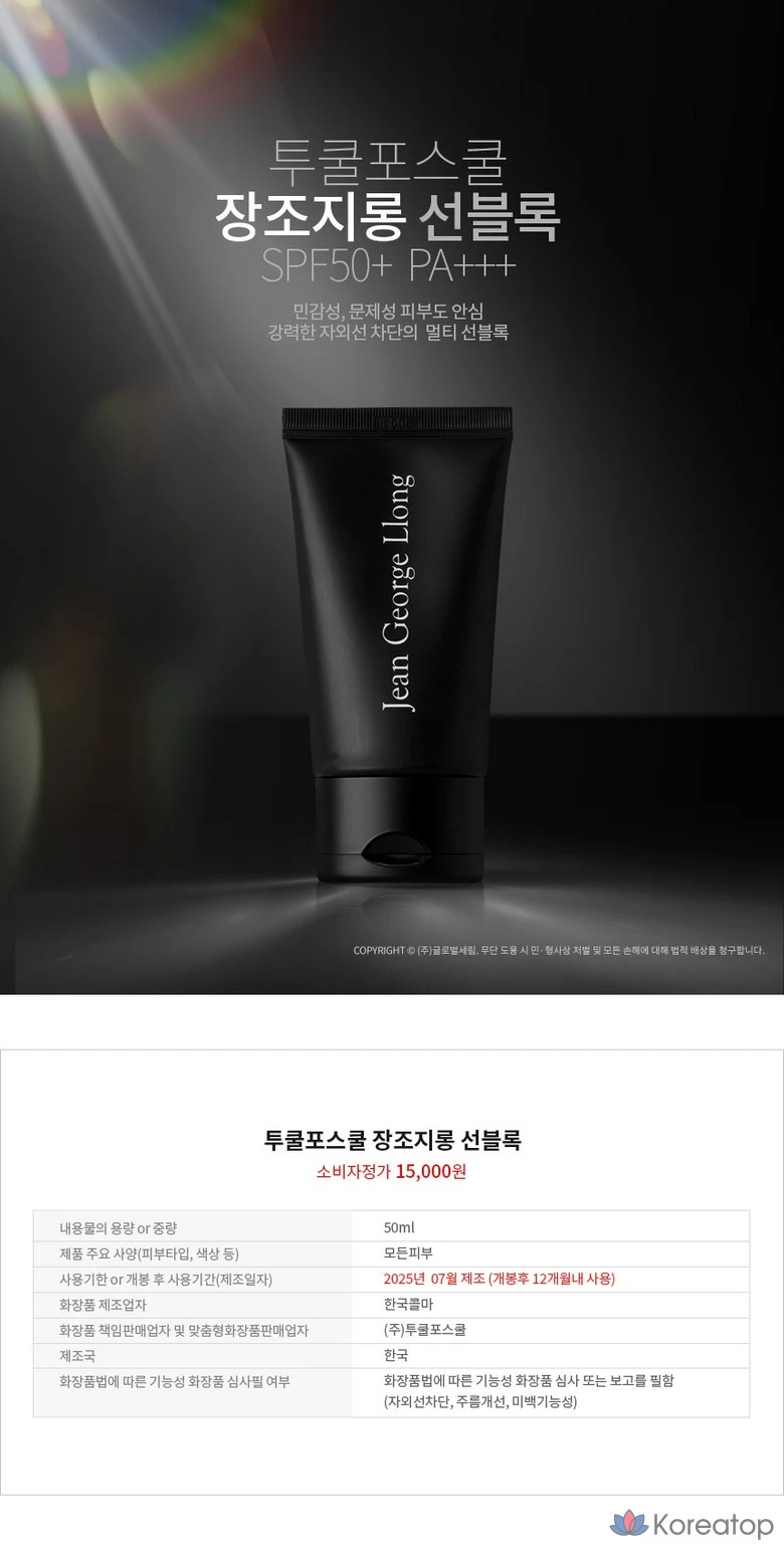 Солнцезащитный крем Too cool for school Jang George Long для мужчин, SPF50+ PA+++, 50 мл, 1 шт.