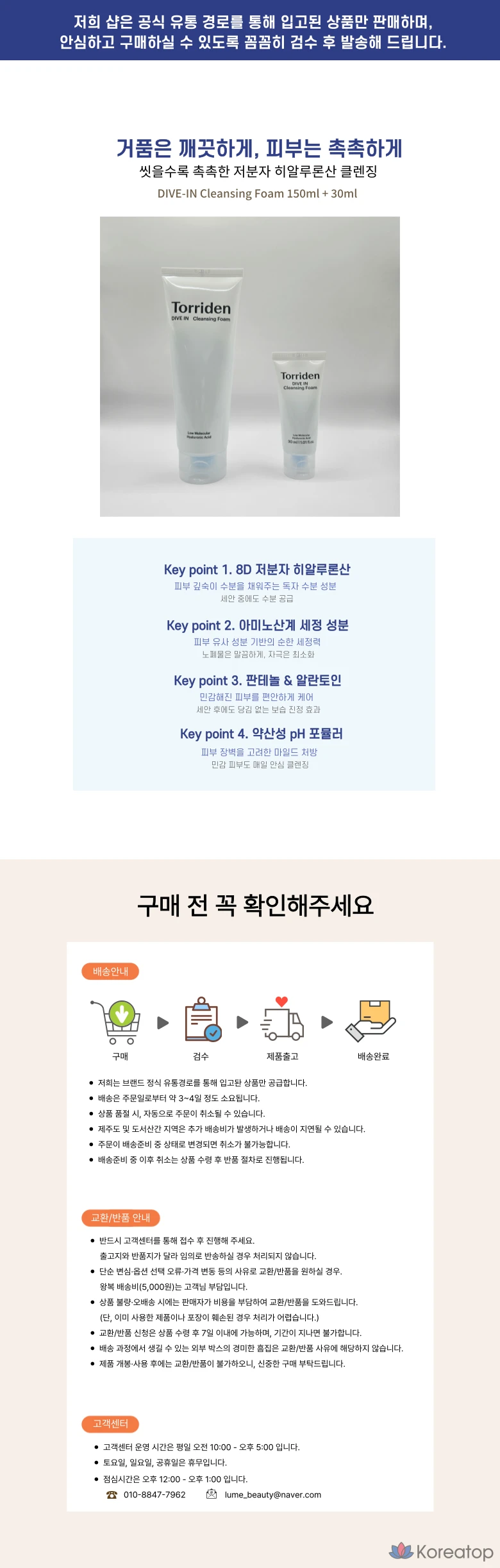 Очищающая пенка Torriden Dive-in с гиалуроновой кислотой, 150 мл, 30 мл, 1 шт., 180 мл