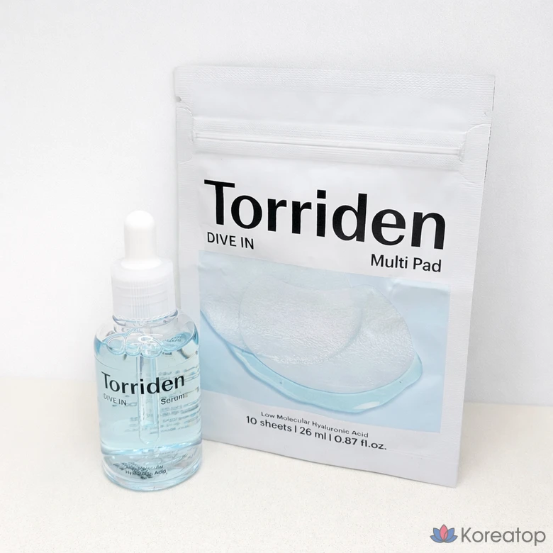 Сыворотка с низкомолекулярной гиалуроновой кислотой Torriden Dive-in, 50 мл, многоразовые подушечки, 10 листов, 1 шт.