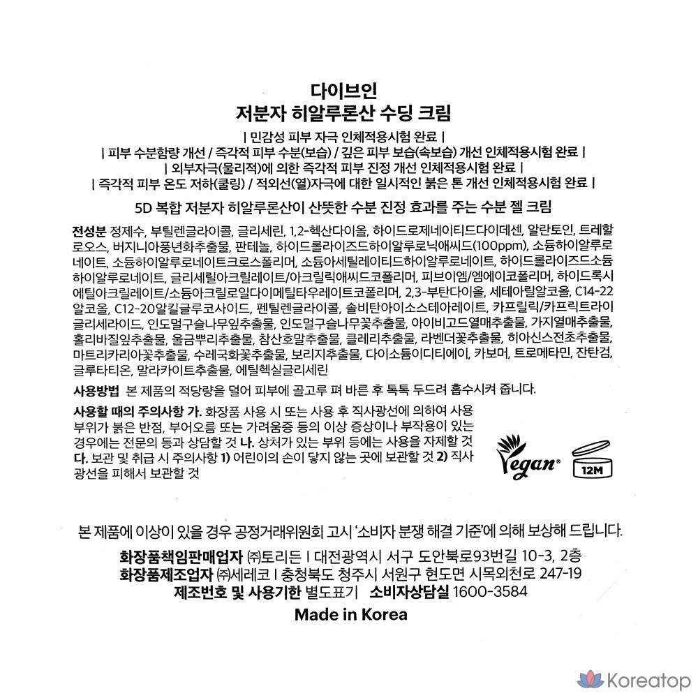 Успокаивающий крем Torriden Dive-in с низкомолекулярной гиалуроновой кислотой, 80 мл, 1 шт.