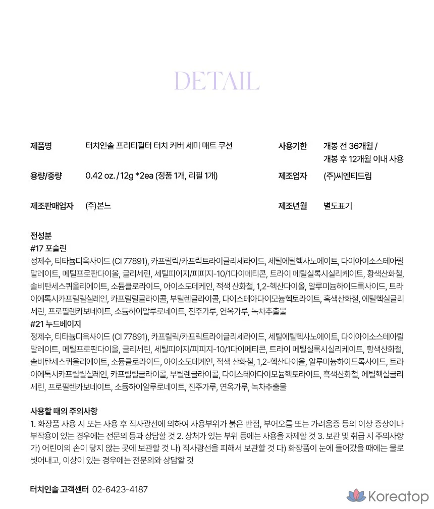 Touch in Sol Pretty Filter Touch Cover Semi-Matte Cushion, 12 г, сменный блок 12 г, № 17, фарфор, 1 комплект.