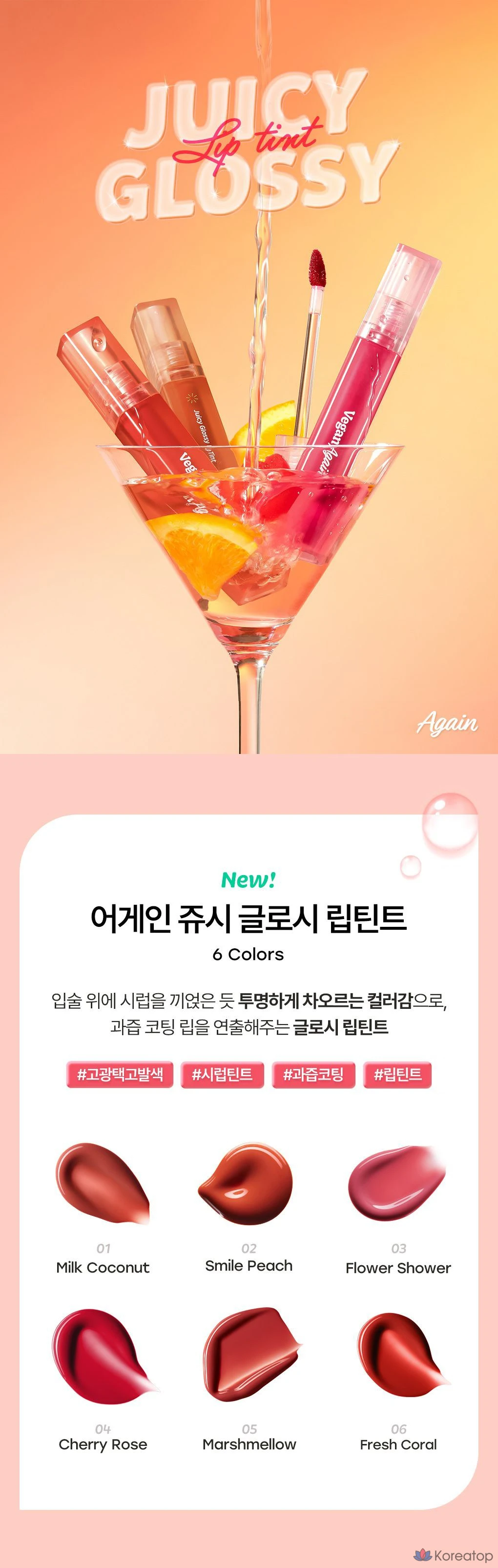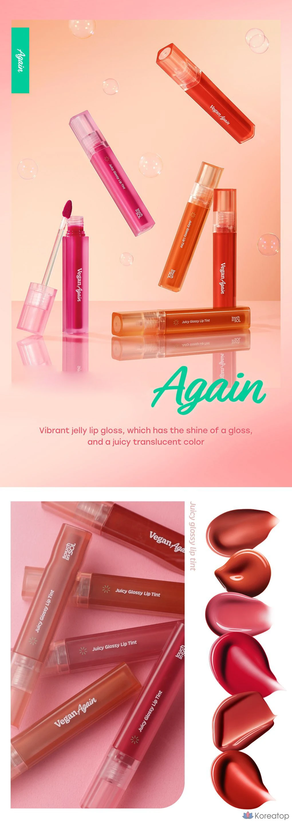 Тинт для губ Touch in Sol Vegan Again Juicy Glossy Lip Tint, оттенок Smile Peach, 1 шт., 3,9 г