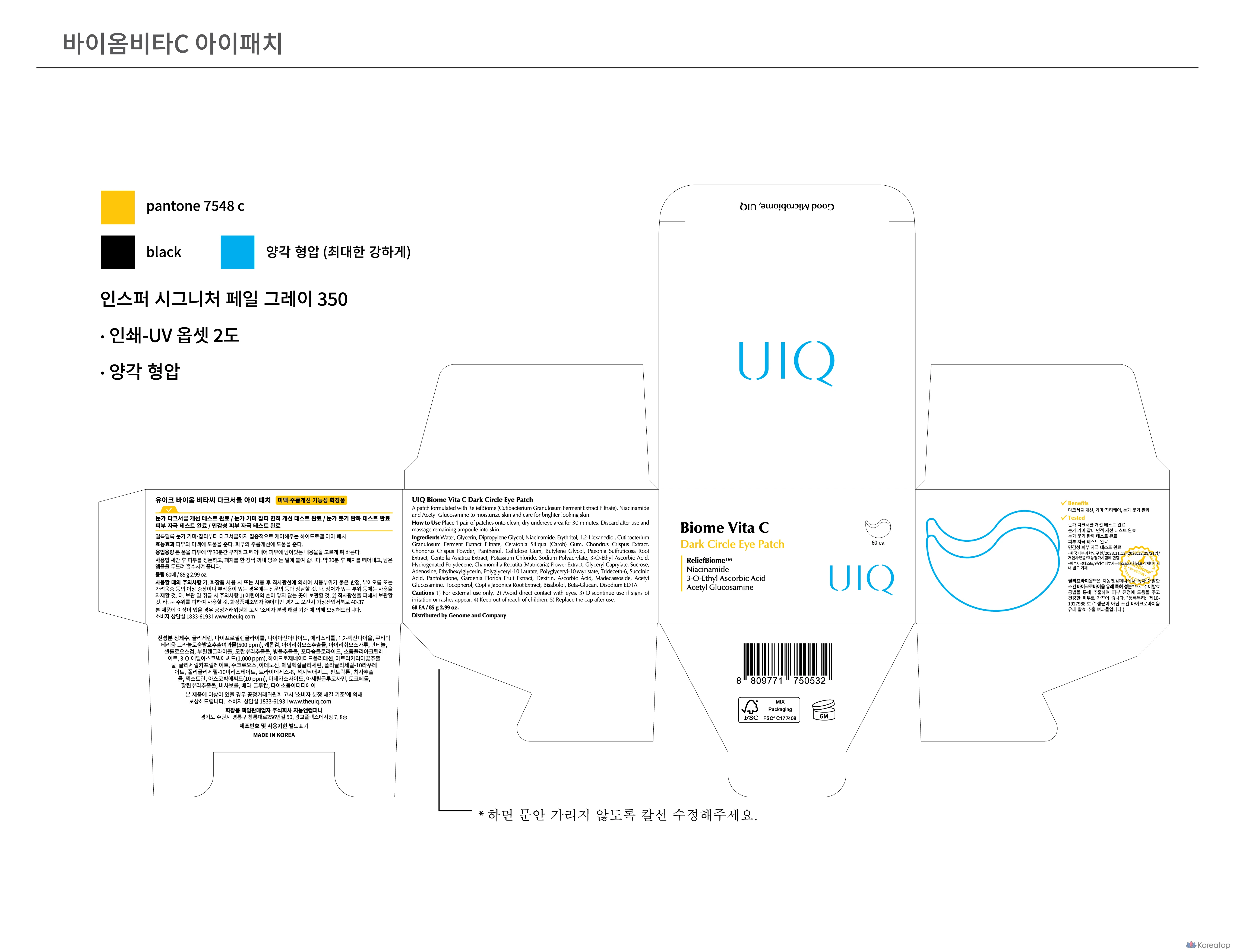 Патчи для глаз UIQ Biome Vita C от темных кругов, 1 упаковка, 60 штук