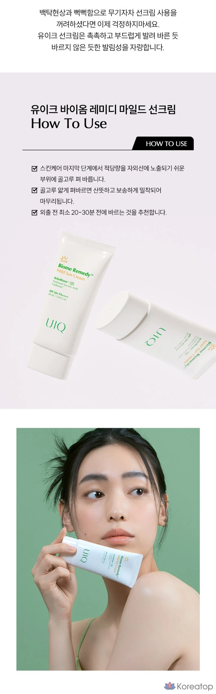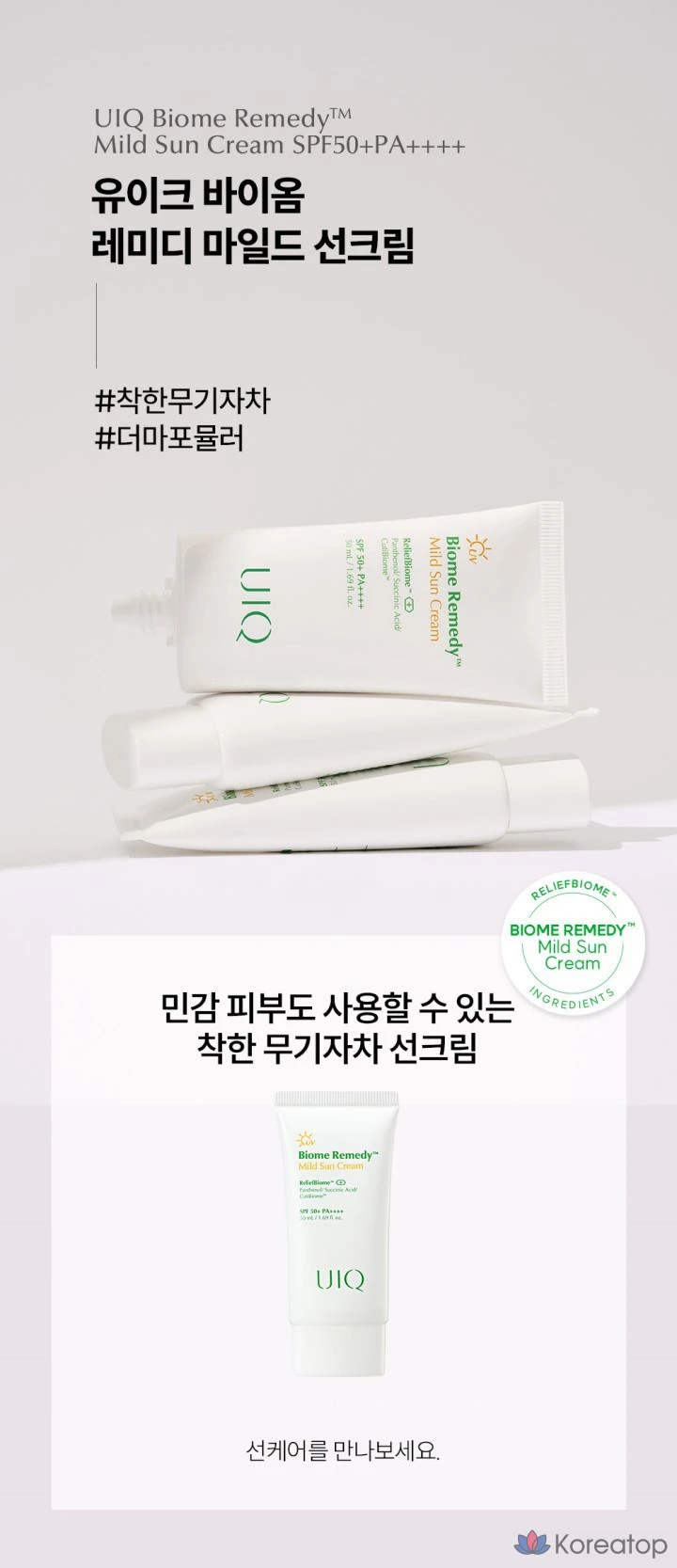 Солнцезащитный крем UIQ Biome Remedy Mild Sunscreen SPF50+ PA++++, 50 мл, 1 шт.