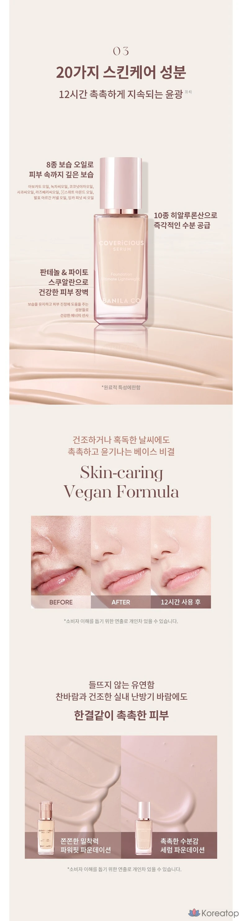 Тональная основа-сыворотка Vanillaco Covericious сочетает в себе преимущества ухода и макияжа. Она обеспечивает надежную защиту от солнца благодаря SPF38 и PA++ фильтрам, что делает ее идеальной для повседневного использования. Увлажняющая текстура легко наносится и придает коже естественный сияющий вид. Формула с сывороткой помогает поддерживать кожу увлажненной в течение всего дня, создавая комфортное ощущение. Это отличный выбор для тех, кто ищет многофункциональное средство для создания безупречного образа. 🌞💧